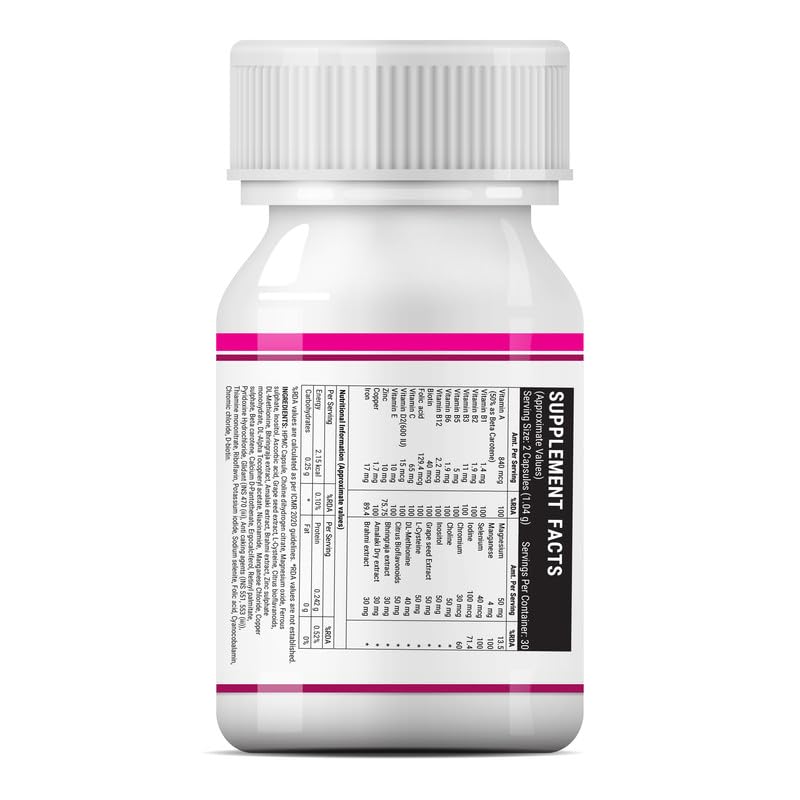 • A unique combination of Biotin Grape Seed Extract L-Cysteine DL-Methionine Citrus Bioflavonoids & natural extracts of Bhringraja Amalaki Dry & Brahmi with essential vitamins & minerals.