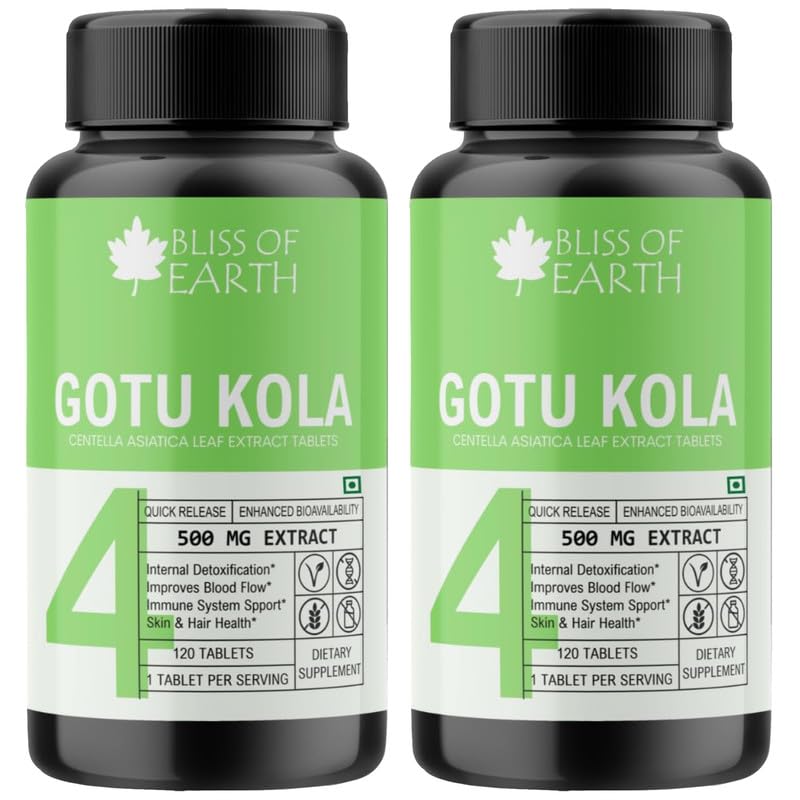 Bliss of Earth High Potency Brahmi Gotu Kola Extracts Tablets 500mg With Quick Release & Enhanced Bioavailability Brain & Nervous System Support 120 Tablet (Pack of 2)