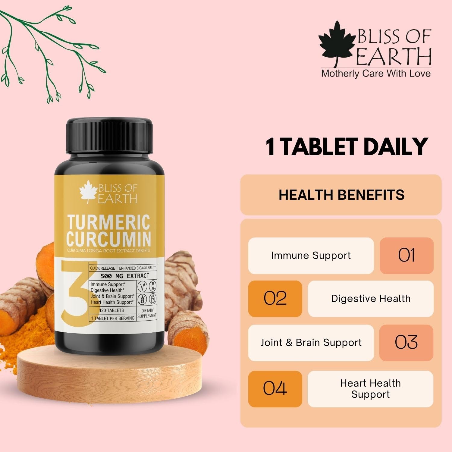 Unlock the power of nature with Bliss of Earth Turmeric Curcumin 500mg tablets a natural supplement designed to promote joint health and support a healthy inflammatory response. These tablets feature a potent dose of curcumin the active compound found in turmeric renowned for its potential health benefits. Experience the quick release and enhanced bioavailability for maximum effectiveness. & Bliss of Earth Arjuna scientifically known as Terminalia arjuna is a revered herbal supplement celebrated for its potential cardiovascular benefits. These Arjuna tablets offer a convenient and standardized way to incorporate the natural goodness of this traditional Ayurvedic herb into your daily wellness regimen.