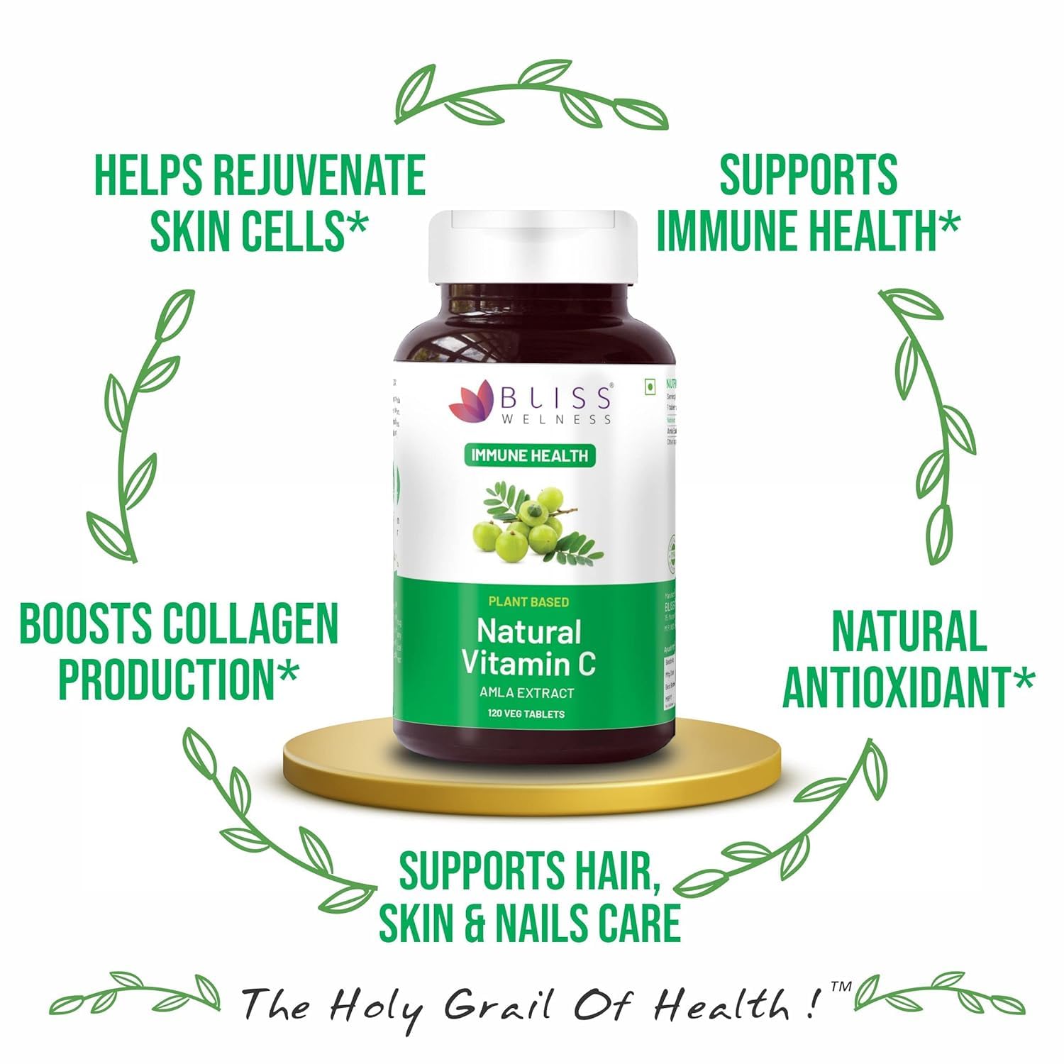 Bliss Welness Immunity Booster Glowing Skin | Natural Vitamin C (Amla Extract) 1000mg | Immunity Boost Antioxidant Skin Care Supplement - 120 Vegan Tablet