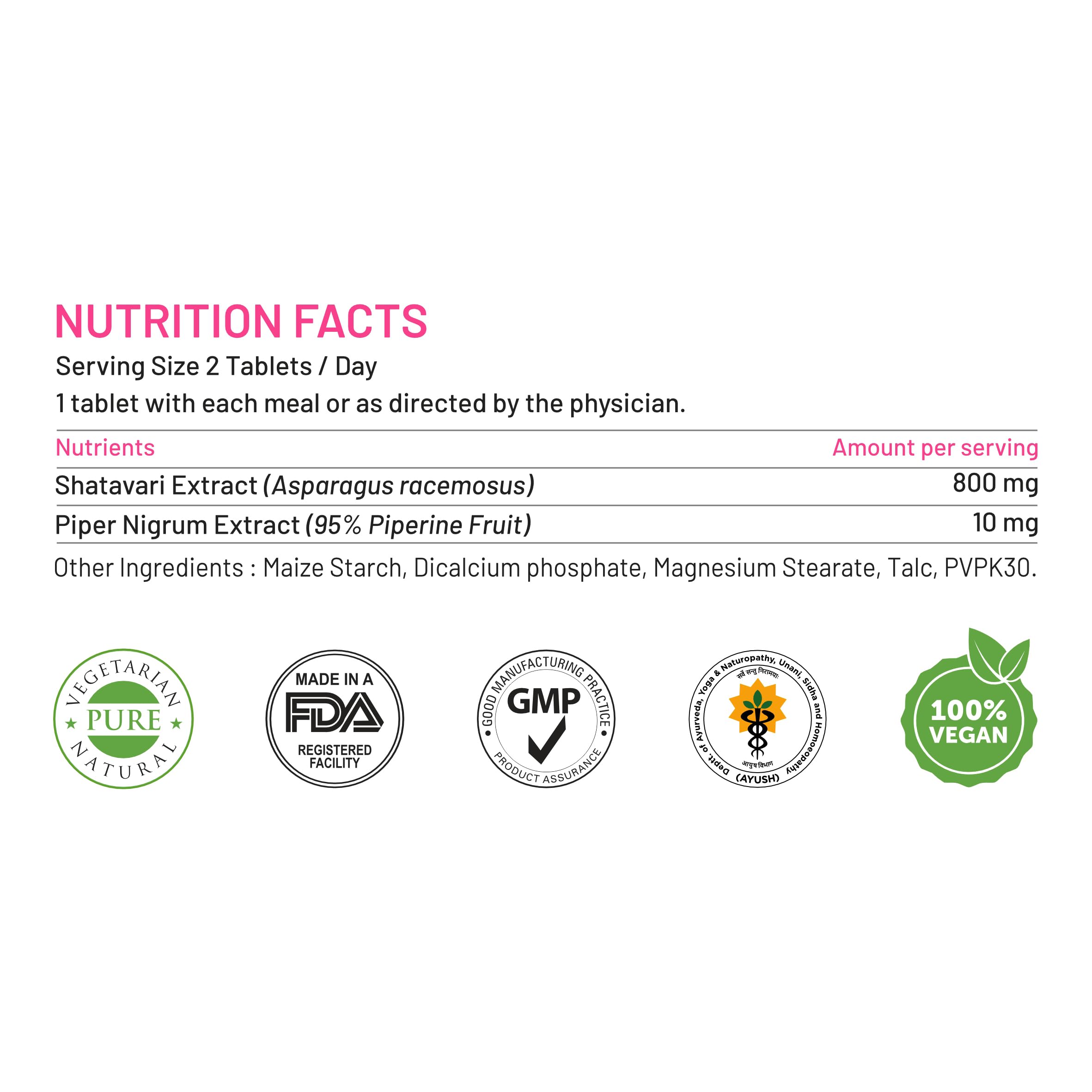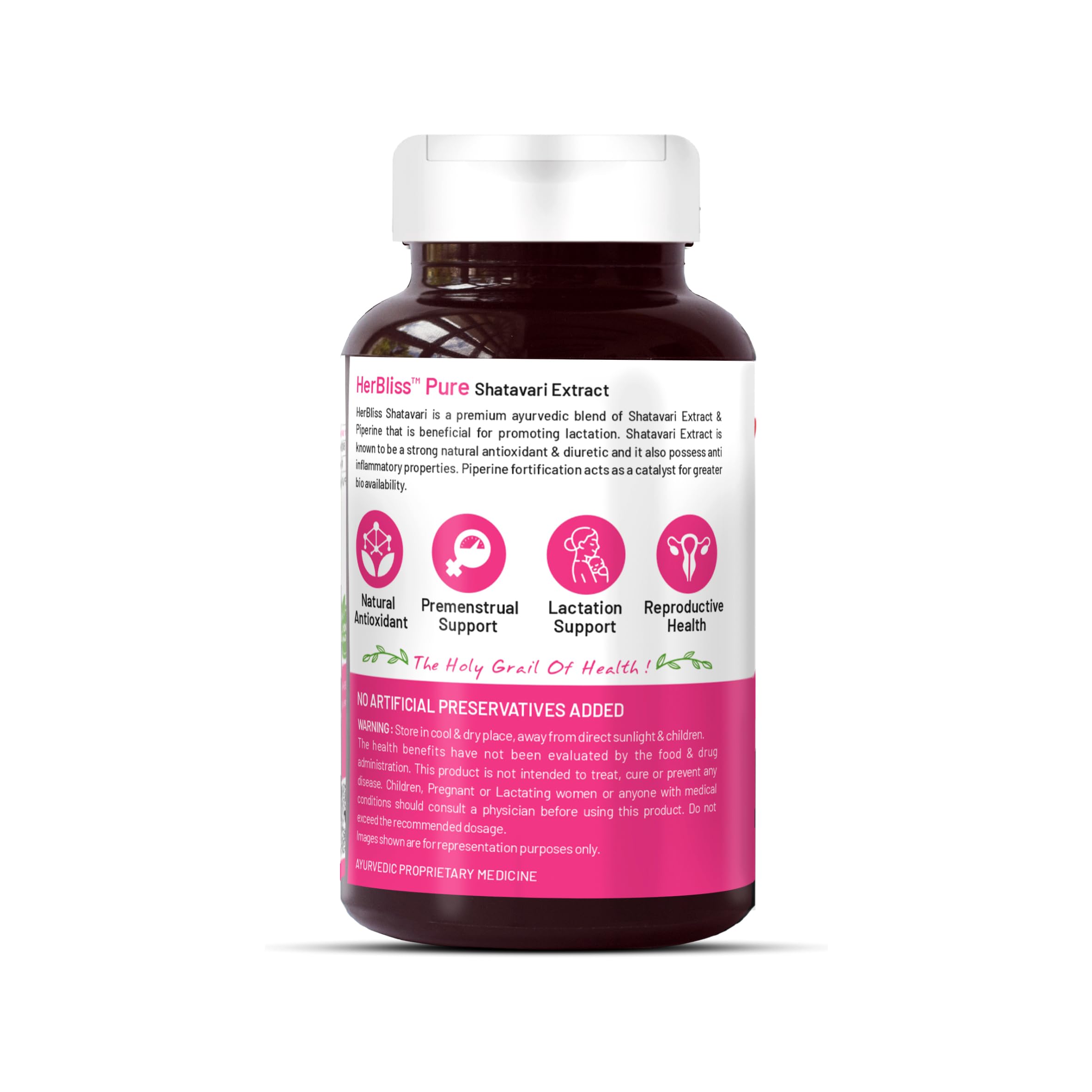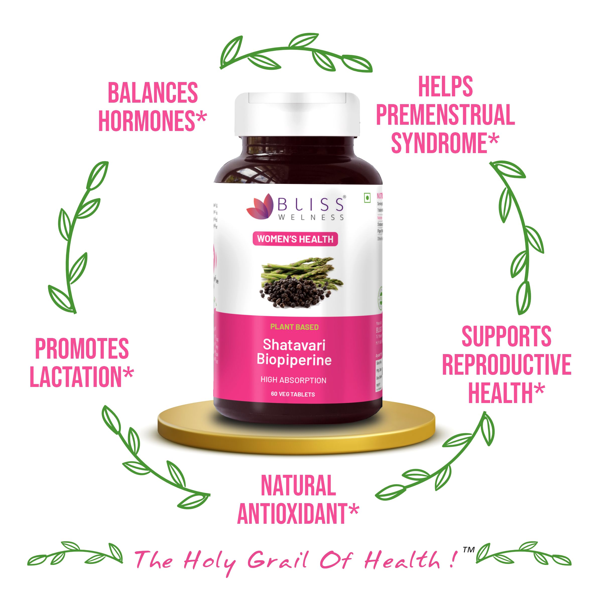 Bliss Welness Organic Shatavari Biopiperine | Women Health | Lactation Support Immunity Booster Menopause Support Vegetarian Supplement - 60 Tablets