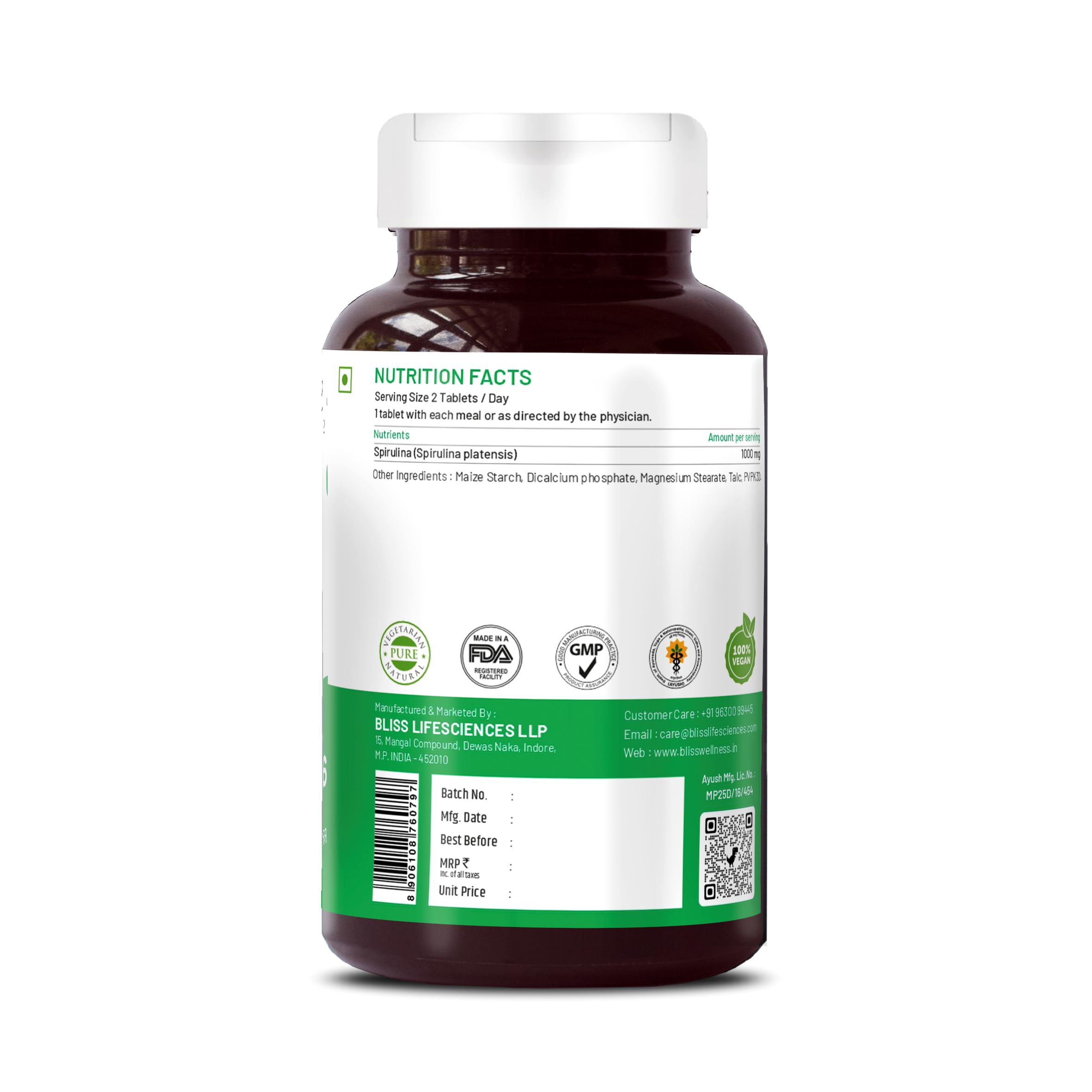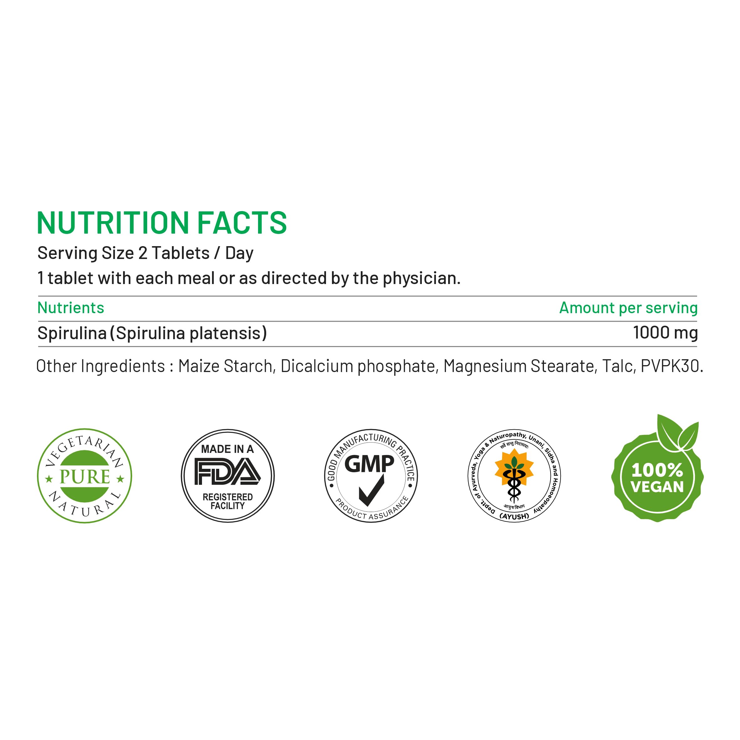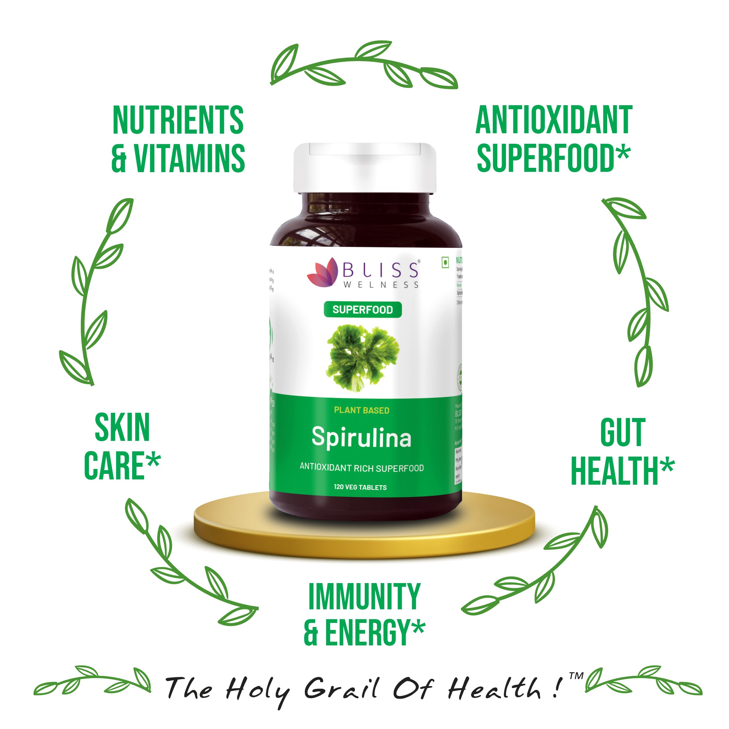 SUPPORTS GUT HEALTH : Spirulina extracts are rich in Amino Acids which provide good digestive enzymes which helps in smooth digestive system. Spirulina also helps enhance nutrient absorption.