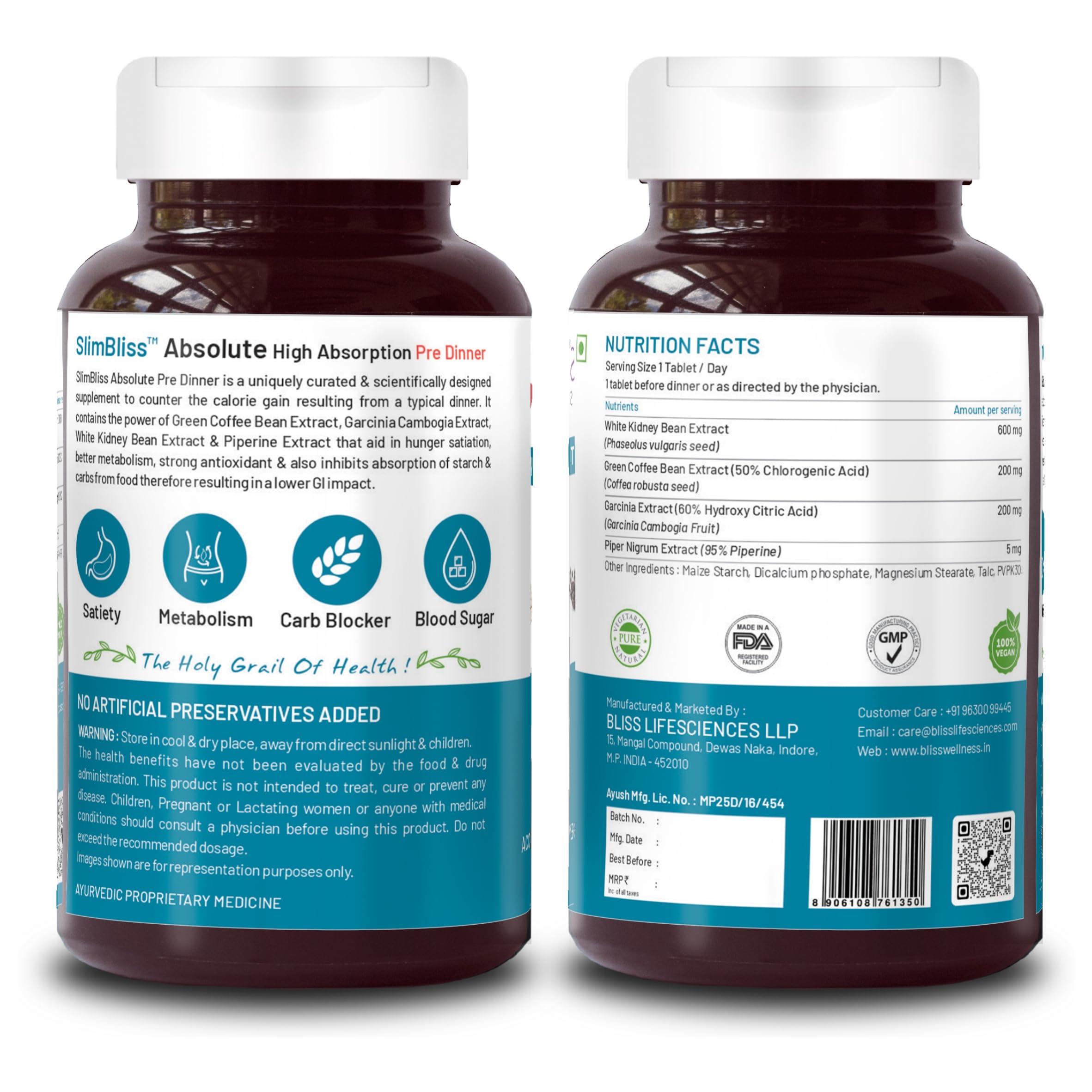 ALL-IN-ONE WELLNESS SUPPORT: SlimBliss Absolute Kit combines key ingredients like CLA Green Coffee Bean Extract White Kidney Bean Extract Fenugreek Extract Garcinia Cambogia Extract and Piperine Extract for comprehensive wellness support.