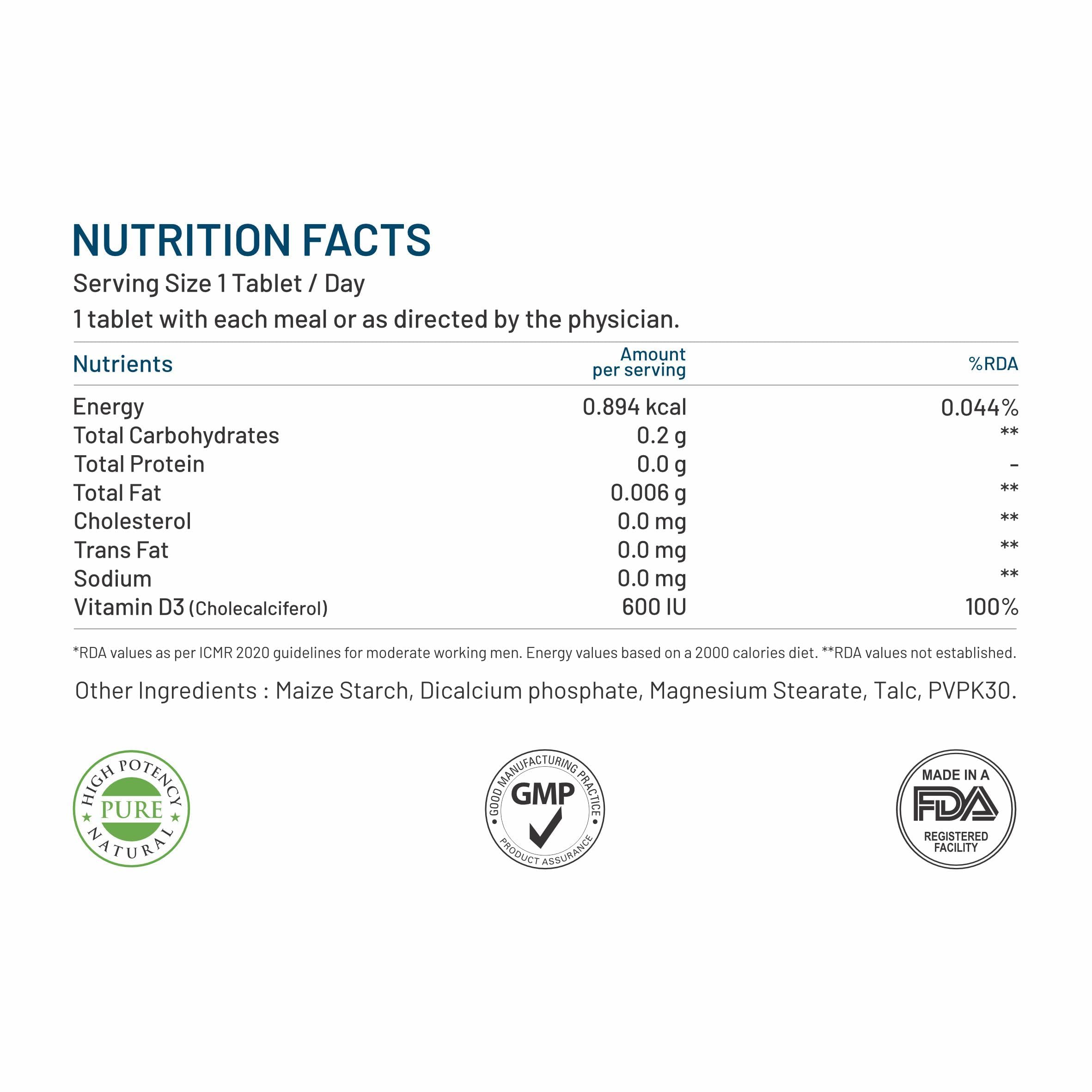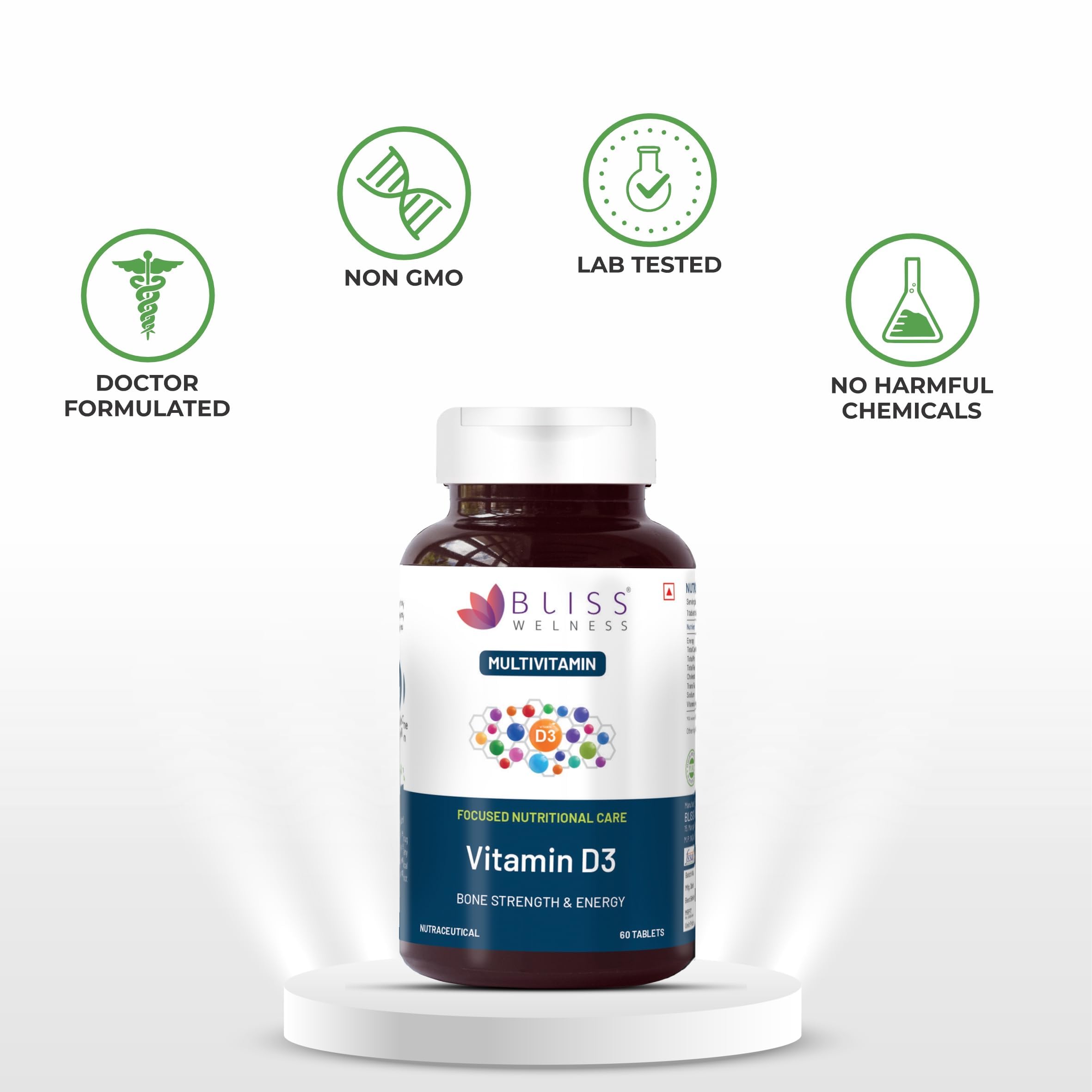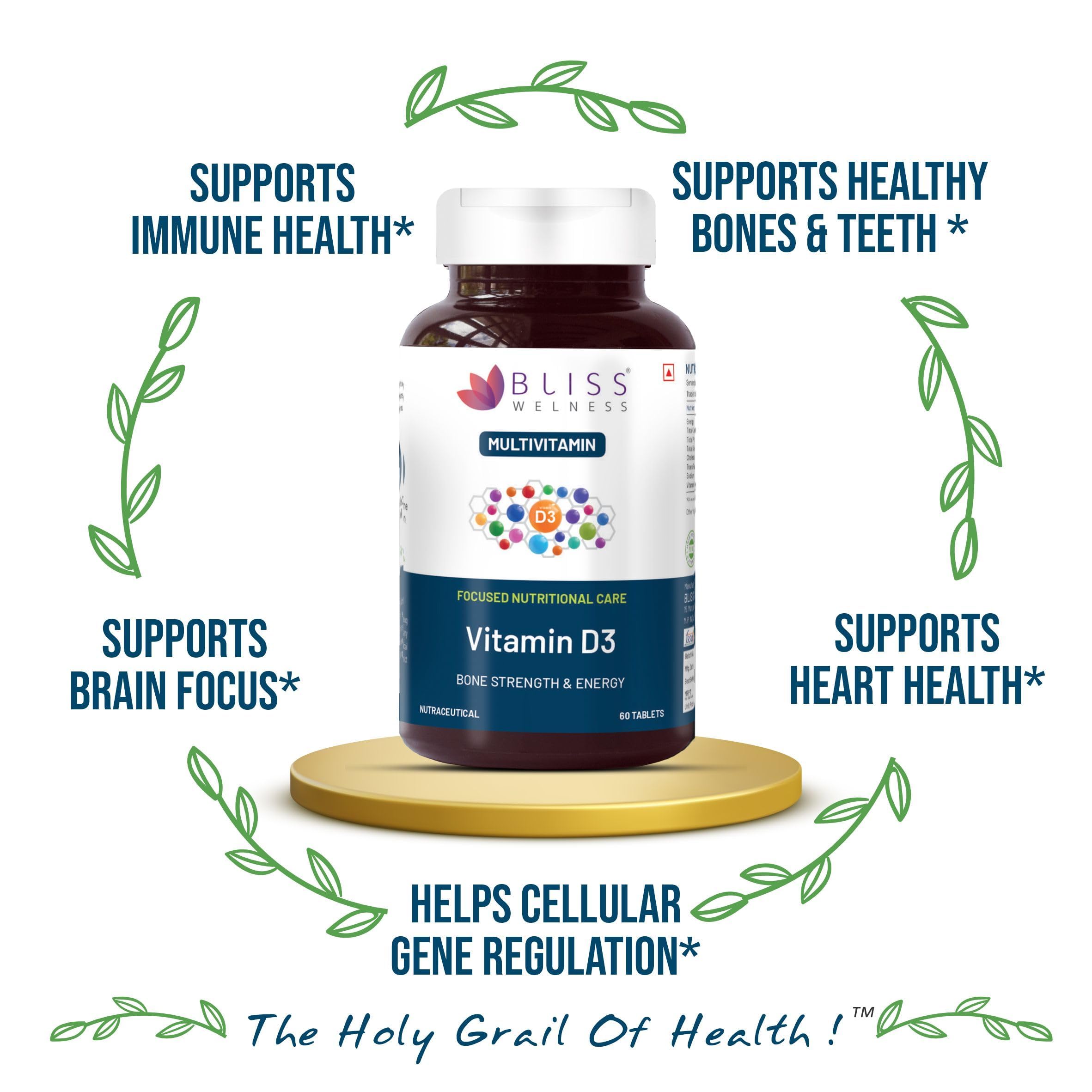Bliss Welness VitaBliss Vitamin D3 For Healthy Immune System and Bone Teeth & Heart Health -60 Tablets