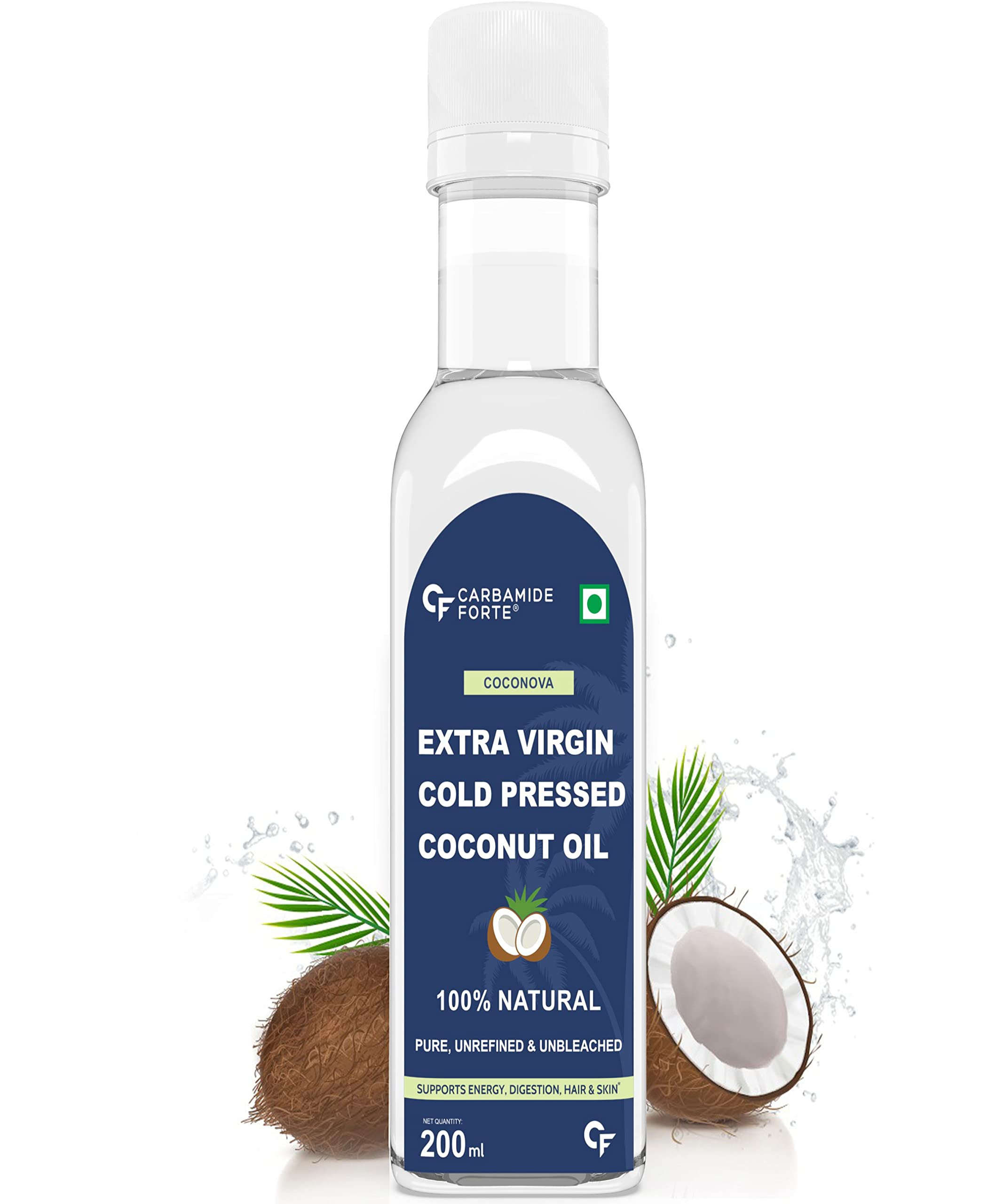Carbamide Forte 100% Pure Extra Virgin Cold Pressed Coconut Oil for Skin Hair Growth & Cooking â 200ml