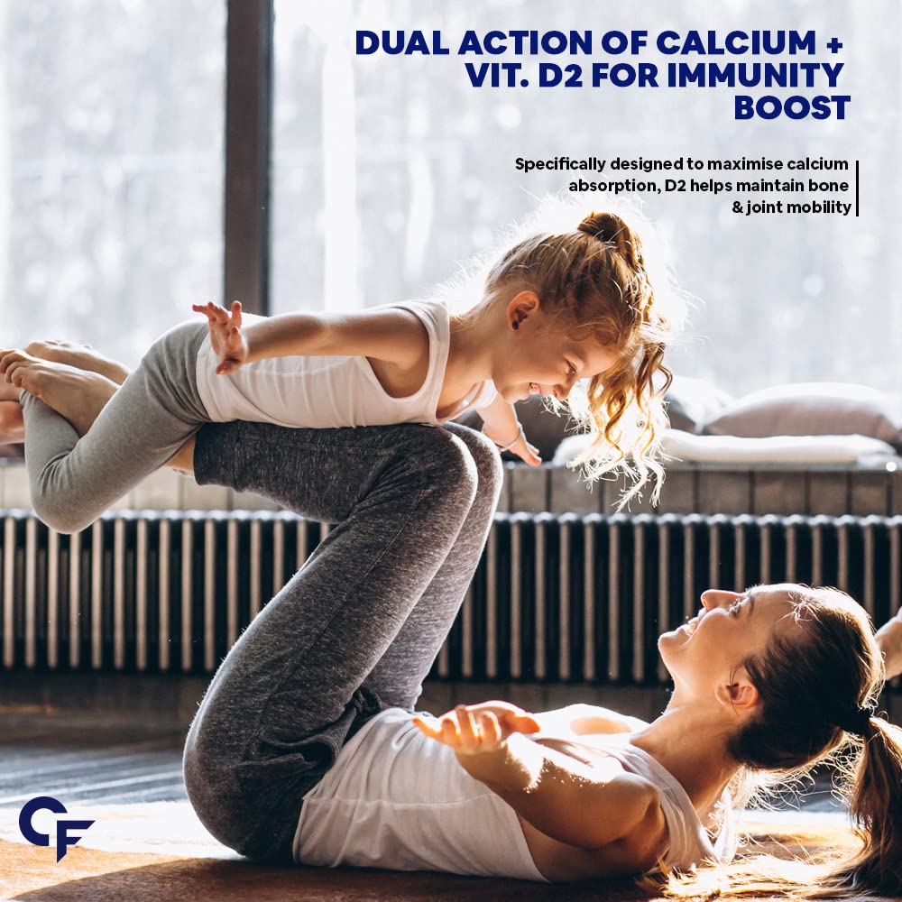 SUPERCHARGE YOUR KIDâS IMMUNE & MOOD SUPPORT WITH VITAMIN D: Apart from giving an instant energy boost our calcium supplements contain Vitamin D2 (Ergocalciferol) which helps increase the absorption of Calcium in the body. It also boosts your child's na