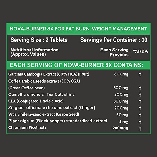 MAXIMUM PURITY & POTENCY In our Fat Burner Tablet for weight loss the Percentage Purity & Potency is highest of ingredients like: Garcinia Cambogia 95% HCA Green Coffee Bean Extract 50% CGA Green Tea Extract 90% Polyphenols Grape Seed Extract 95% Proanth
