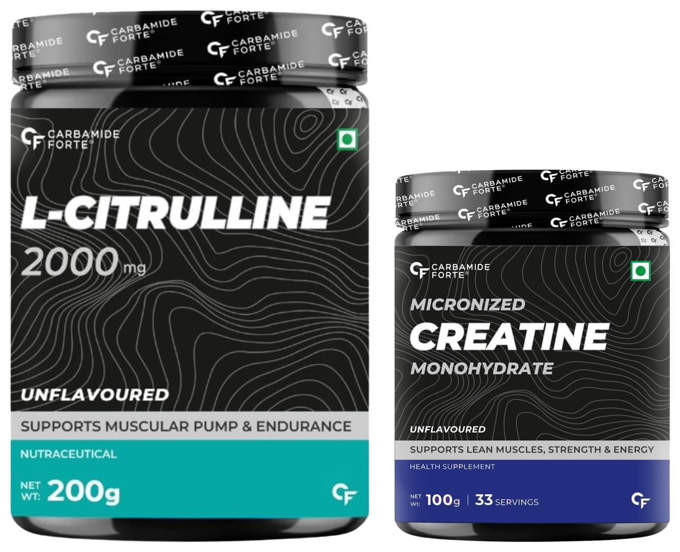 Carbamide Forte L Citrulline Powder 2000mg | Boosts Nitric Oxide Pre Workout Supplements for Men & Women - Unflavoured - 100 SERVINGS - 200gCarbamide Forte L Citrulline Powder 2000mg | L Citrulline Supplement for Men & Women - Unflavoured - 100 SERVINGS - 200gCarbamide Forte Micronised Creatine Monohydrate Powder | Creatine Supplement for Lean Muscle Volumization Strength & Energy - Unflavoured - 33 Servings - 100gCarbamide Forte Micronised Creatine Monohydrate Powder | Creatine Supplement for Lean Muscle Volumization Strength & Energy - Unflavoured - 33 Servings - 100g