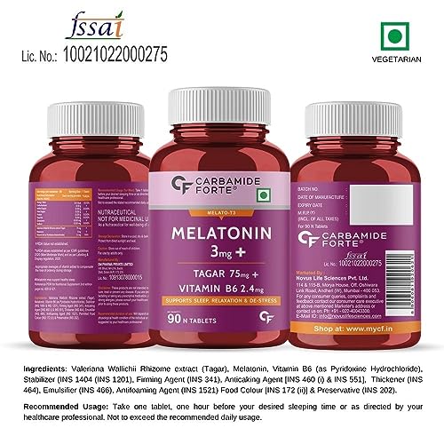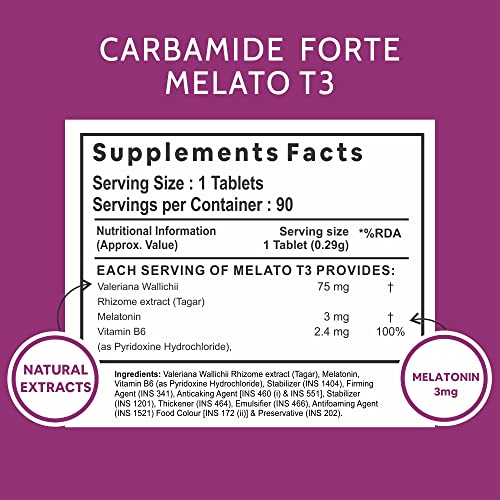 Carbamide Forte Melatonin 3mg with Tagara 75mg Sleeping Aid Pills 90 Tablets