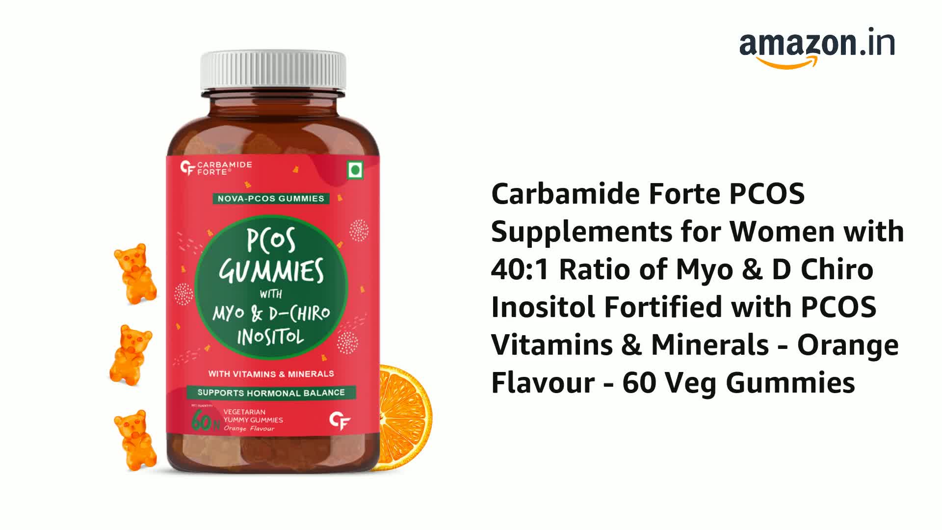 Carbamide Forte PCOS Supplements for Women with 40:1 Ratio of Myo Inositol to D Chiro Inositol | Inositol Supplement for PCOS - 60 Veg Orange Flavoured Gummies