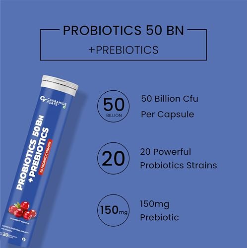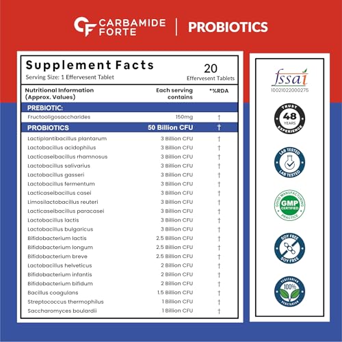 HomeHealth & PersonalDiet & NutritionHealth SupplementsCarbamide Forte Probiotics Supplement 50 Billion CFU for Women & Men | Probiotics for Gut Health | Support Digestion & Immunity - 20 Effervescent Tablets | Gut Health Supplements (Pack of 3)