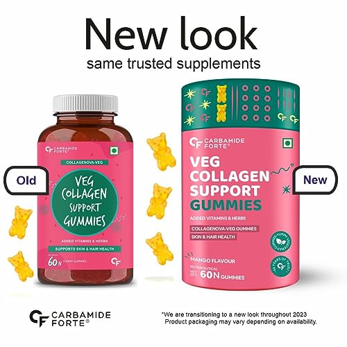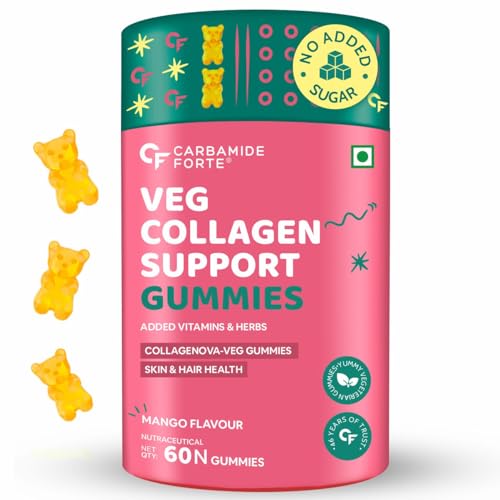Carbamide Forte Veg Collagen Support Gummies, 60 Gummies | Collagen Supplements for Women & Men for Skin & Hair - Mango Flavour, 250 Grams, 60 Servings