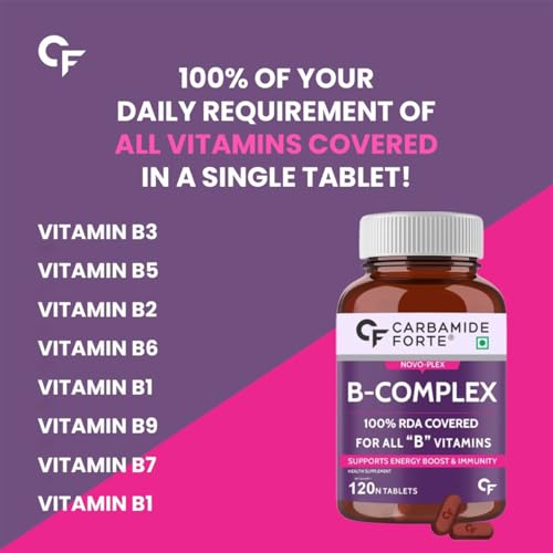 HomeHealth & PersonalDiet & NutritionHealth SupplementsCarbamide Forte Vitamin B-Complex Tablets - 100% RDA for B Vitamins with B1, B2, B3, B5, B6, B9 & Vitamin B12 | Vitamin B Complex Supplements for Women & Men - 120 Vegetarian Tablets