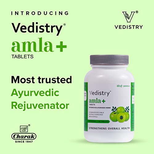 Charak Vedistry Amla+ With Piperine,Promote Skin & Hair Health,Anti-Oxidant & Anti-Aging,Boosts Immunity,100% Pure Herbs Used,Rich In Vitamin C,Digestion Tablet (60 Tablet-Pack Of 1)
