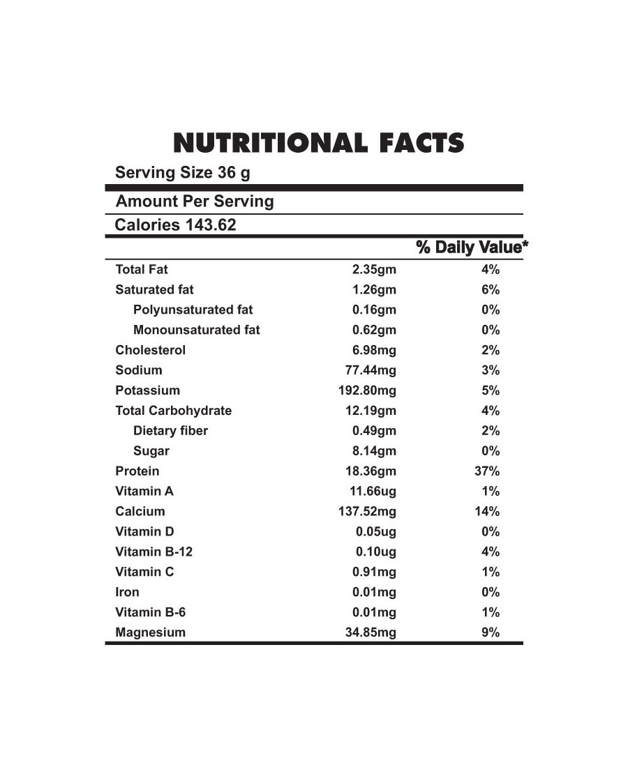 Ingredients (each 10 gms): whey protein 5 gm skimmed milk powder 2 gm millet flour 1.5 gm crushed sugar 1.5 gm. Fortified with: tal makahana(asteracantha longifolia) 1000 mg shatavar(asparagus racemosus) 1000 mg vidhari kand(pueria tuberosa) 250 mg salab panja(orchis lantifolia) 250 mg punarnava(boerhavia diffuse) 250 mg safed moosali(asparagus adsecendens) 250 mg salam mishri(orchid mascula) 500 mg ashwagandha(withania somniferra) 500 mg munnaka(vitis venifera) 300 mg.