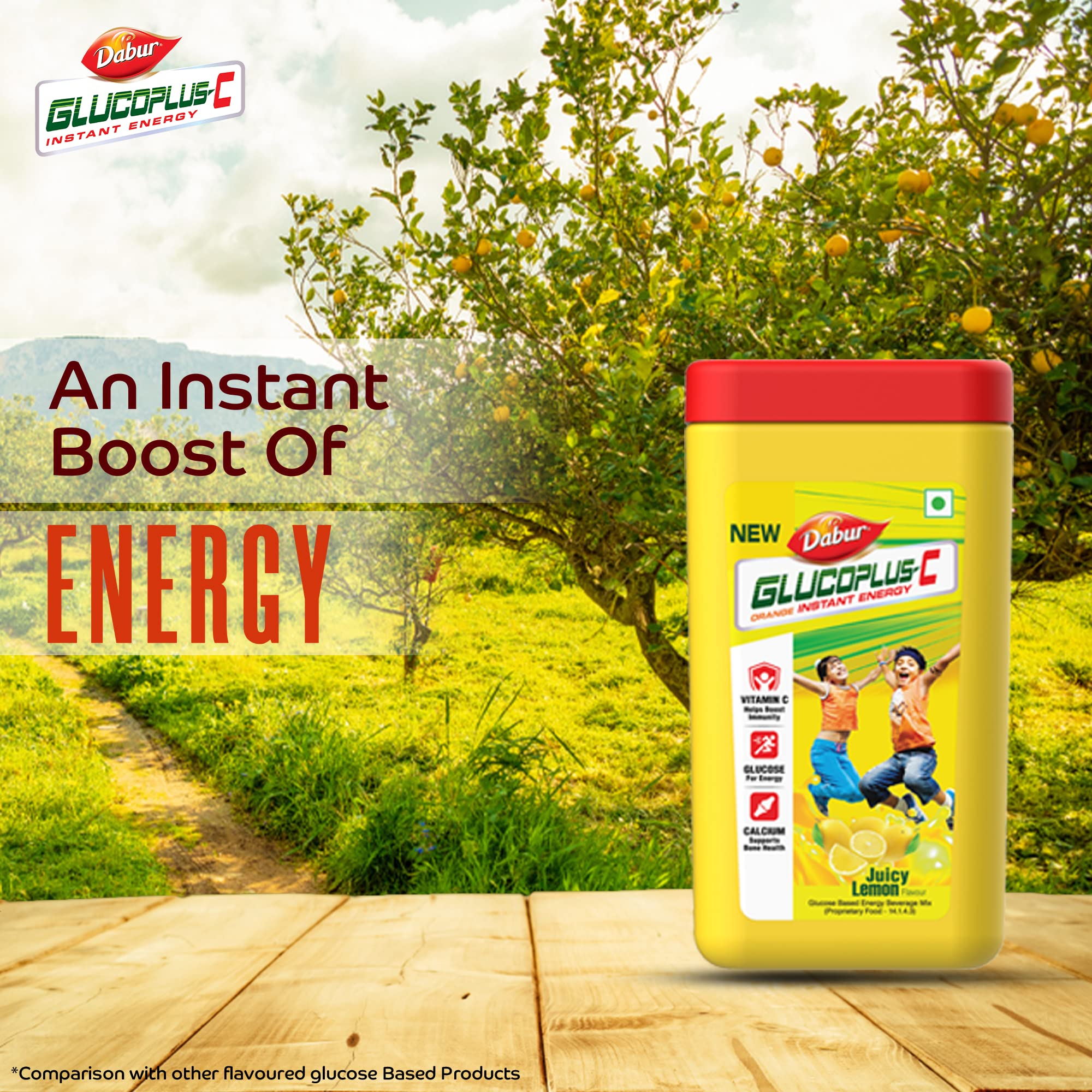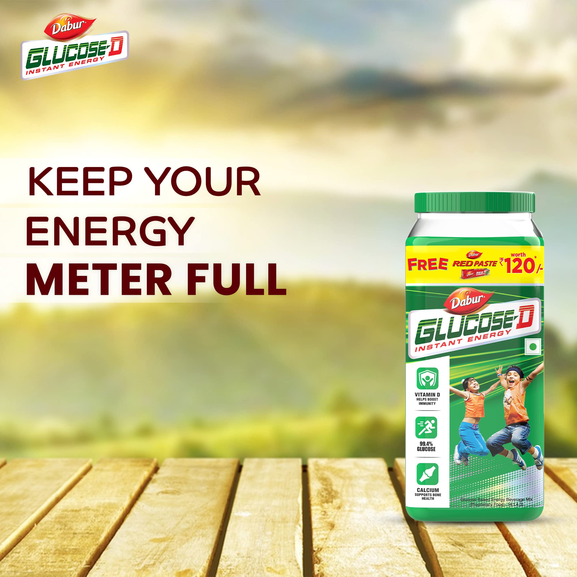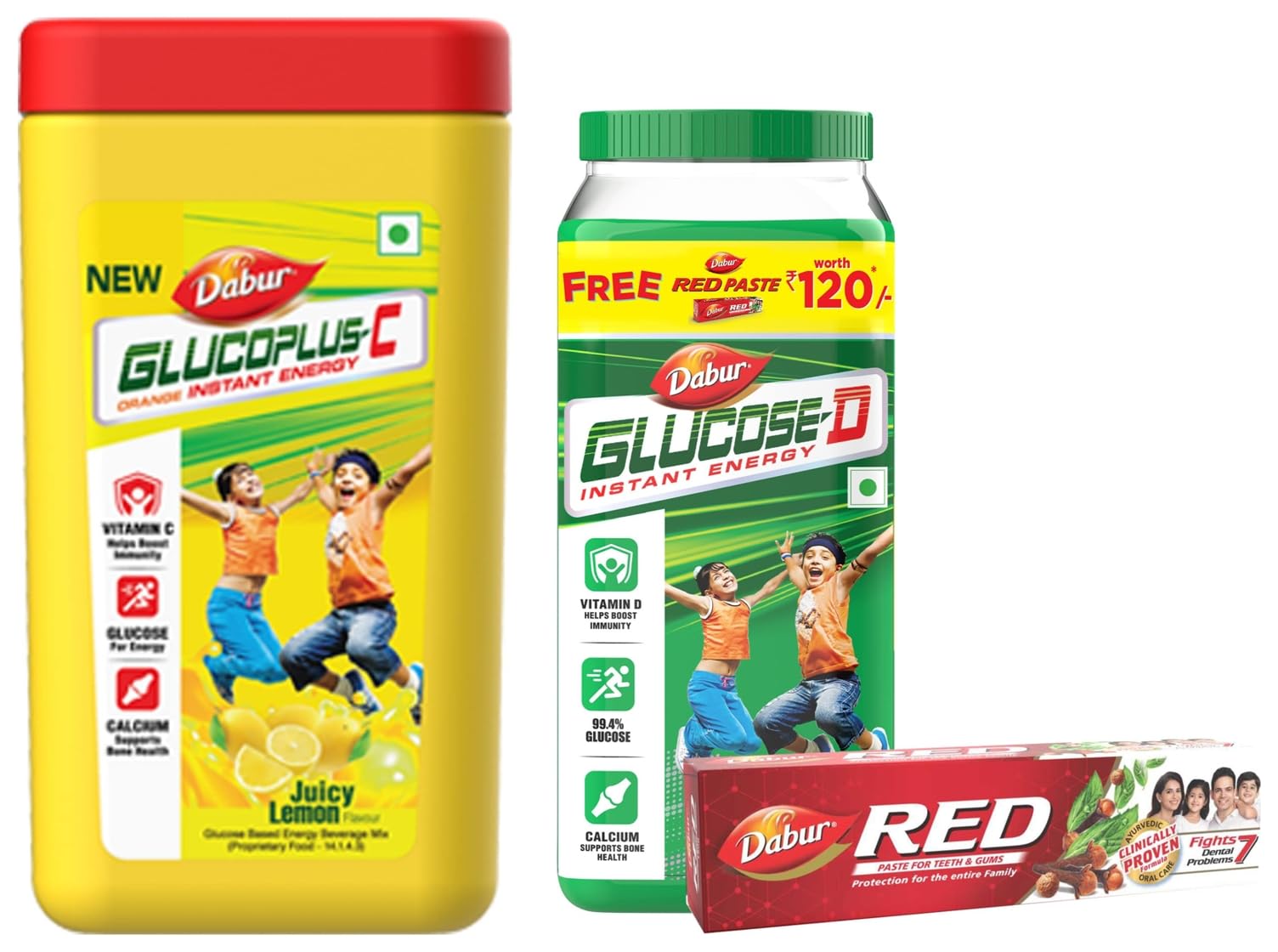 Dabur GlucoPlus-C Instant Energy Glucose Juicy & Tasty Lemon Flavour - 400g Jar + Dabur Glucose D Instant Energy Glucose Juicy & Tasty - 1 kg with Dabur Red Paste 200g free