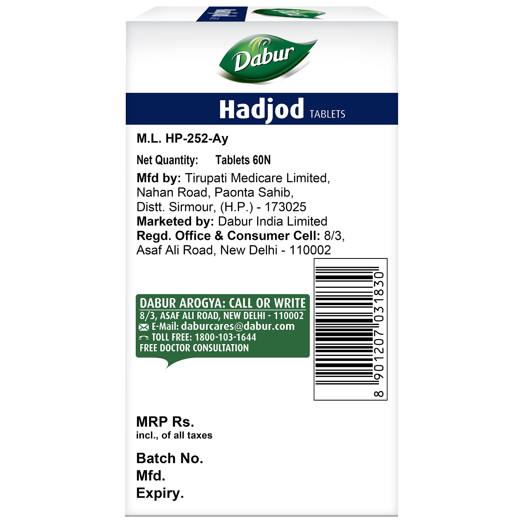 • Natural Ingredients Dabur Hadjod Tablets are made using natural extracts of Hadjod which is a well known herb in Ayurveda.