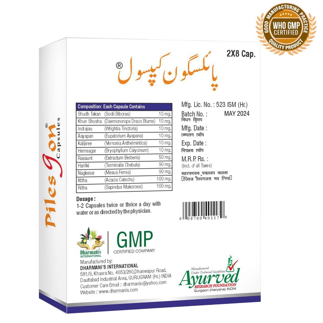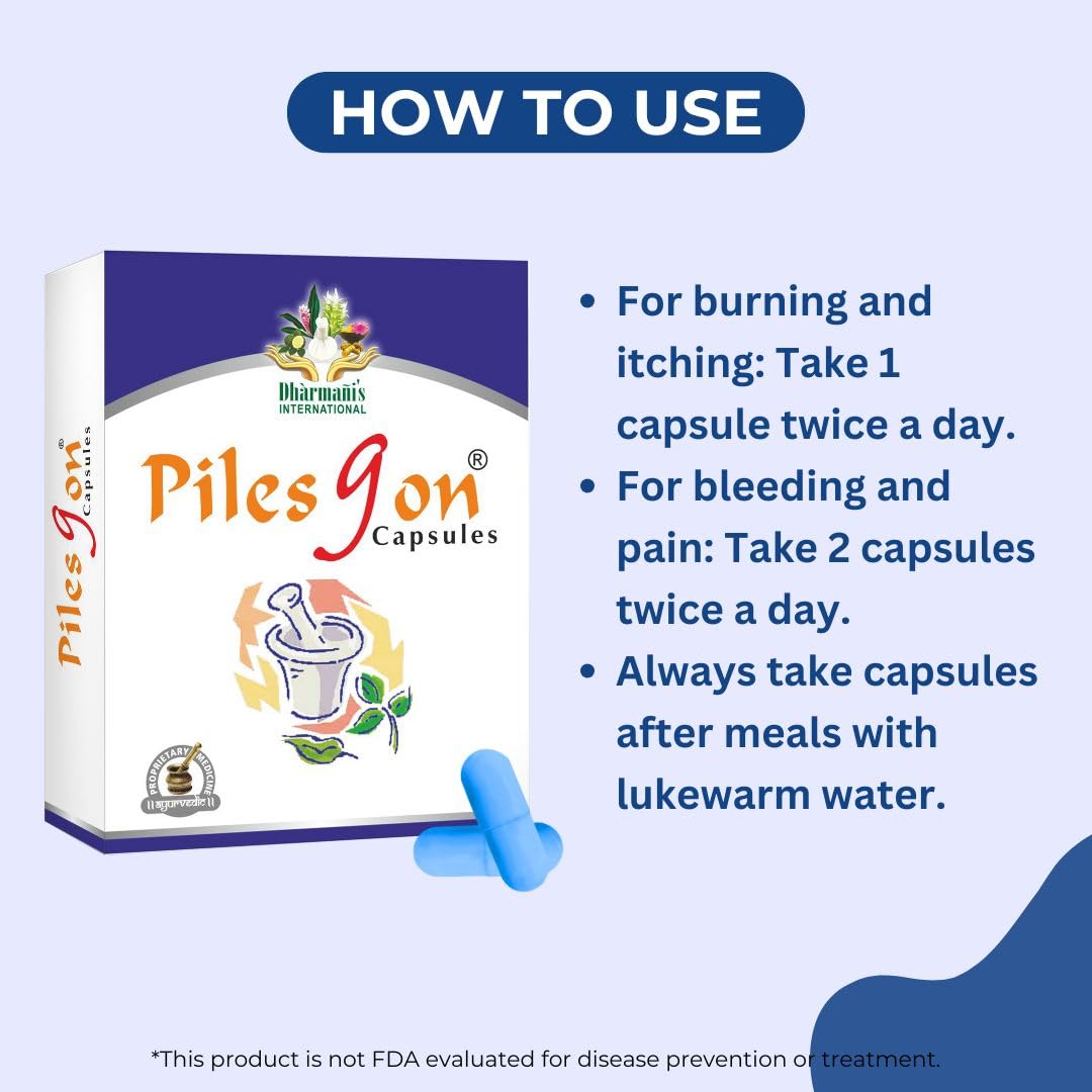 Dharmani's Intternational Piles Gon Capsule | Ayurvedic Relief from Pain Bledding & Constipation (Pack of 5)