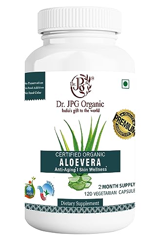 Dr. JPG Organic Aloevera Capsules 120 Veg Capsules/Helps Rejuvinate Skin and Hair/INDIA ORGANIC Certified