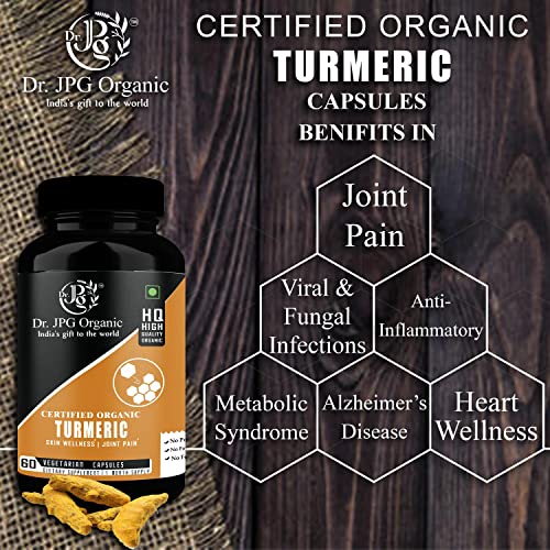 Dr. JPG Organic Capsules For Liver & Kidney Wellness Turmeric Gokhru Moringa & Aloe Vera 240 veg. Capsules (60 Cap. In Each Bottle) INDIA Organic Certified.