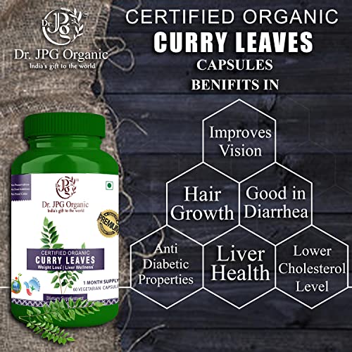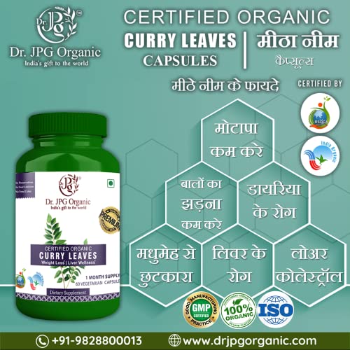 Dr. JPG Organic Curry Leaves Capsules For Weight loss & Liver Wellnes 60 Veg. CapsulesI/INDIA ORGANIC Certified (Pack Of 1)