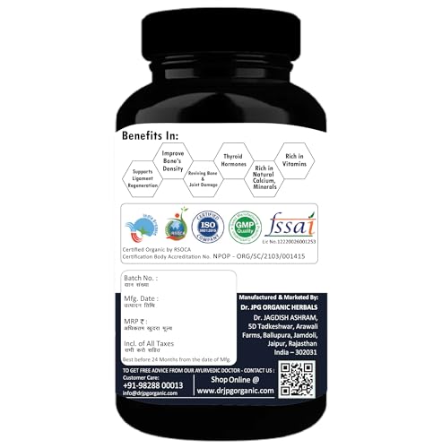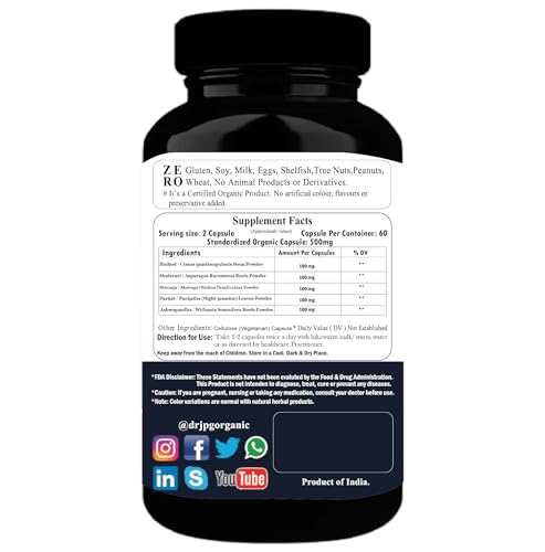Dr. JPG Organic Joint & Bone Care 500mg 60Veg. Capsules/INDIA Organic Certified/Helps in Improve Joint & Bone Strength.
