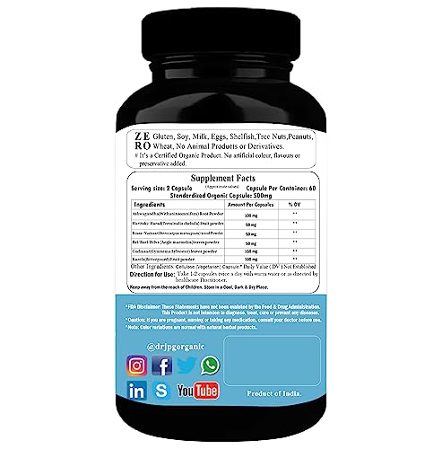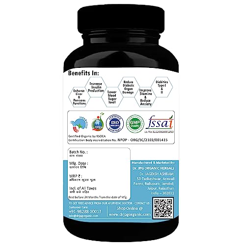 Dr. JPG Organic Sugar Balance 500mg 60veg capsules/INDIA Organic Certified/ISO & GMP Certified.