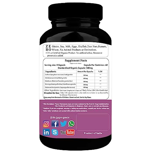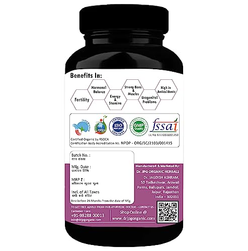 Dr. JPG Organic Women wellness 500mg 60veg. Capsules | INDIA Organic Certified | ISO & GMP Certified.