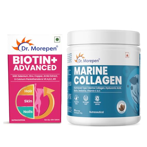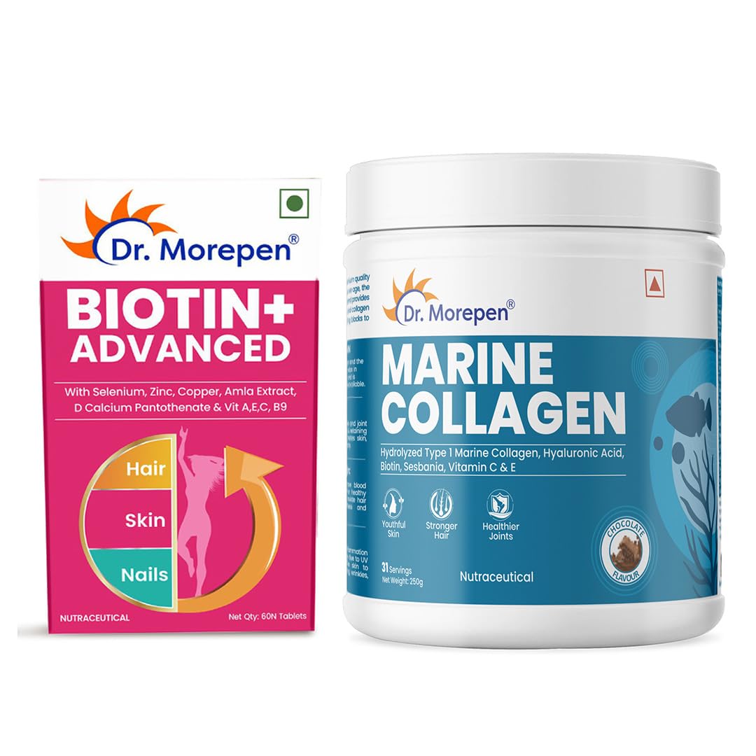 DR. MOREPEN Biotin+ for Hair Growth, Glowing Skin & Healthy Nails & Marine Collagen Skin Protein Powder With Hyaluronic Acid, Vitamin C, Sesabania & Biotin For Healthy Skin