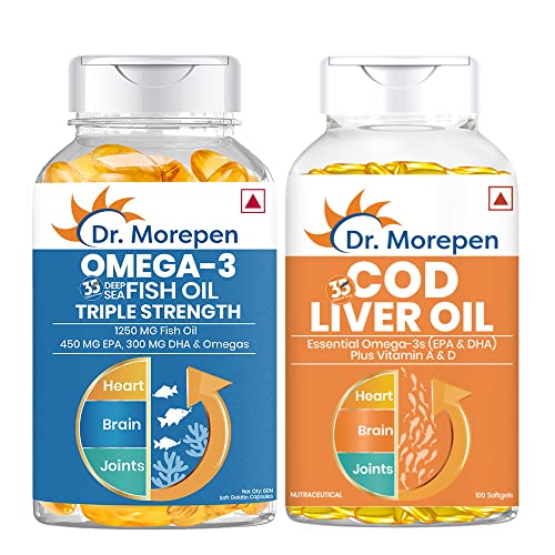 DR. MOREPEN Combo of Omega 3 fish oil capsules softgel 1250 mg and COD capsules for Men & women, 260 grams