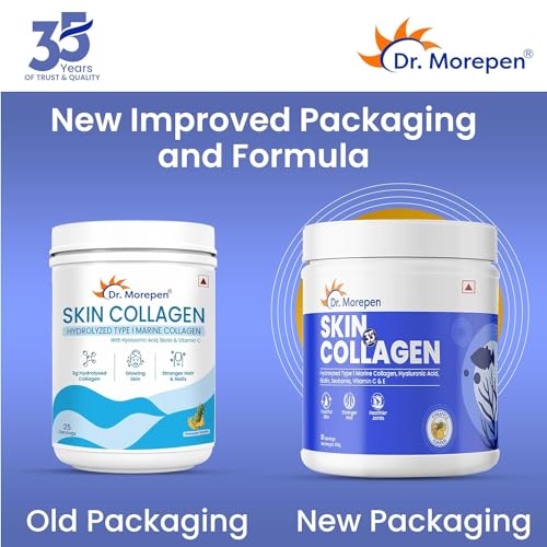 ADVANCED COMPREHENSIVE FORMULA: Dr. Morepenâs SKIN COLLAGEN is a blend of scientifically crafted Hydrolyzed Type 1 Marine Collagen Hyaluronic acid Biotin Vitamin C and Vitamin E to help revitalize and rejuvenate the skin cells from within.