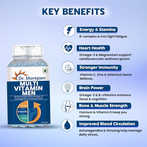 DR. MOREPEN Multivitamins For Men With Omega 3 & Herbs | Energy & Immunity Booster Supplement - 60 Veg Tablets (Multivitamin Men & Gokshura)