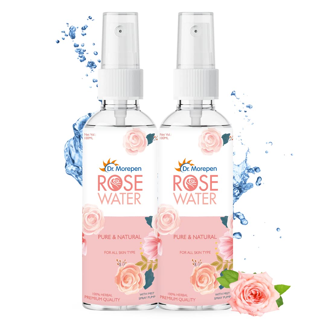Dr. Morepen Rose Water Spray - Pure & Natural | 100% Herbal, High in Vitamin A & C, Good For All Skin Types |Natural Rose Water Spray - Pack of 2 (100 ml each)
