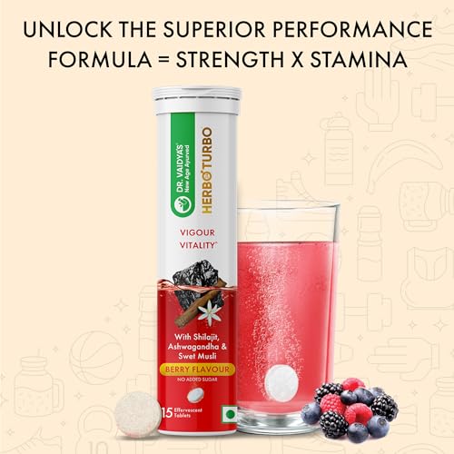 Dr. Vaidya's Herbo24Turbo Effervescent: Unlock Super Vigour and Vitality with Shilajit and Ashwagandha (Berry Flavour)
