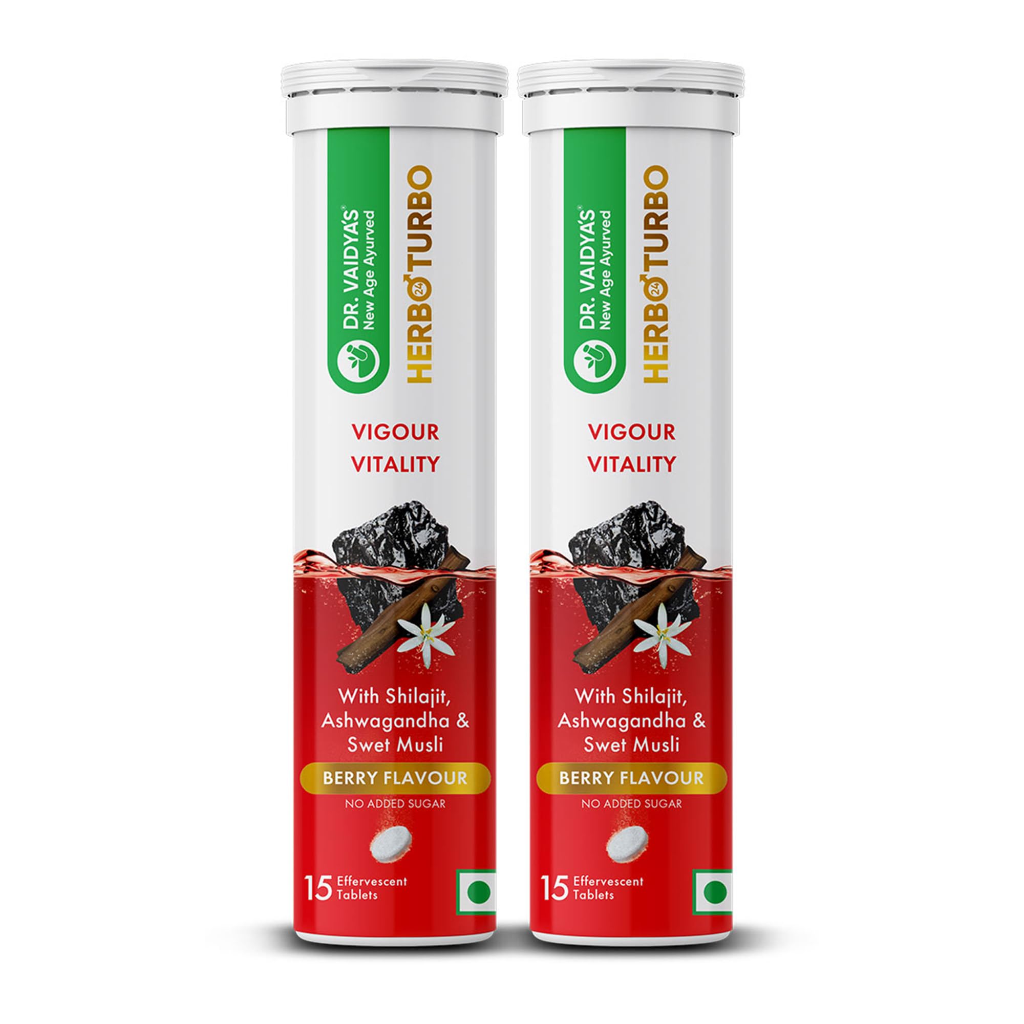 Dr. Vaidya's Herbo24Turbo Effervescent: Unlock Super Vigour and Vitality with Shilajit and Ashwagandha(Berry Flavour)(Pack of 2)