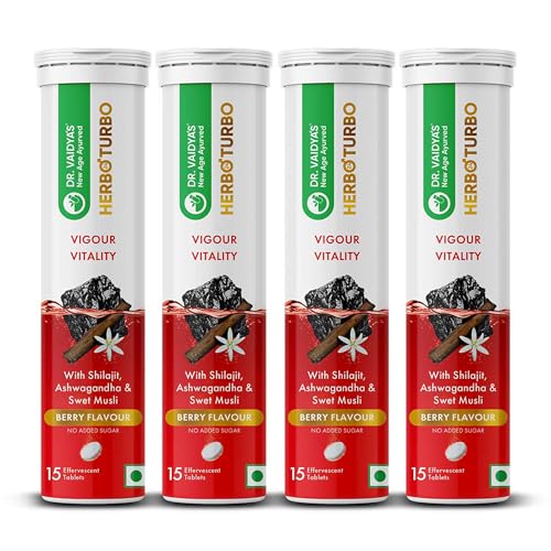 • Contains Richness of 6 Natural Ingredients - Dr. Vaidya's Herbo24Turbo Effervescent contains science-backed ingredients such as Shilajit Ashwagandha and Safed Musli for enhanced performance and strength