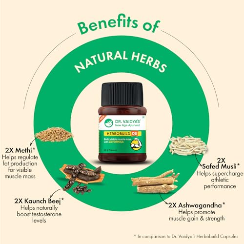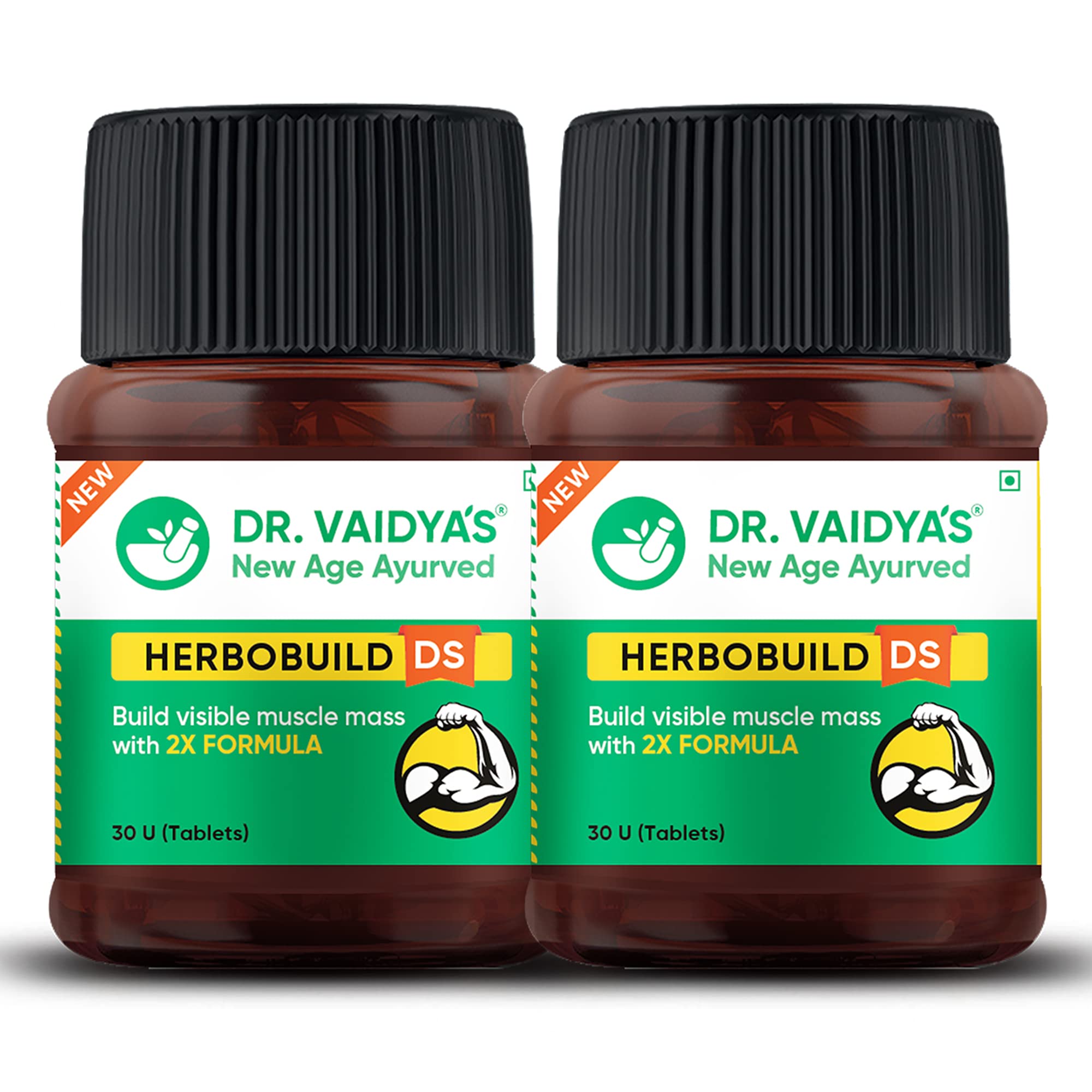 DR. VAIDYA'S new age ayurveda Herbobuild Ds (Double Strength) Capsules | Ayurvedic Muscle & Mass Gainer For Enhanced Stamina & Peak Fitness | (30 Capsules Each) Pack Of 2