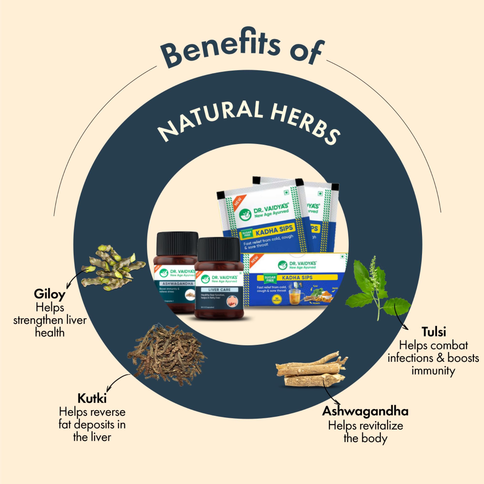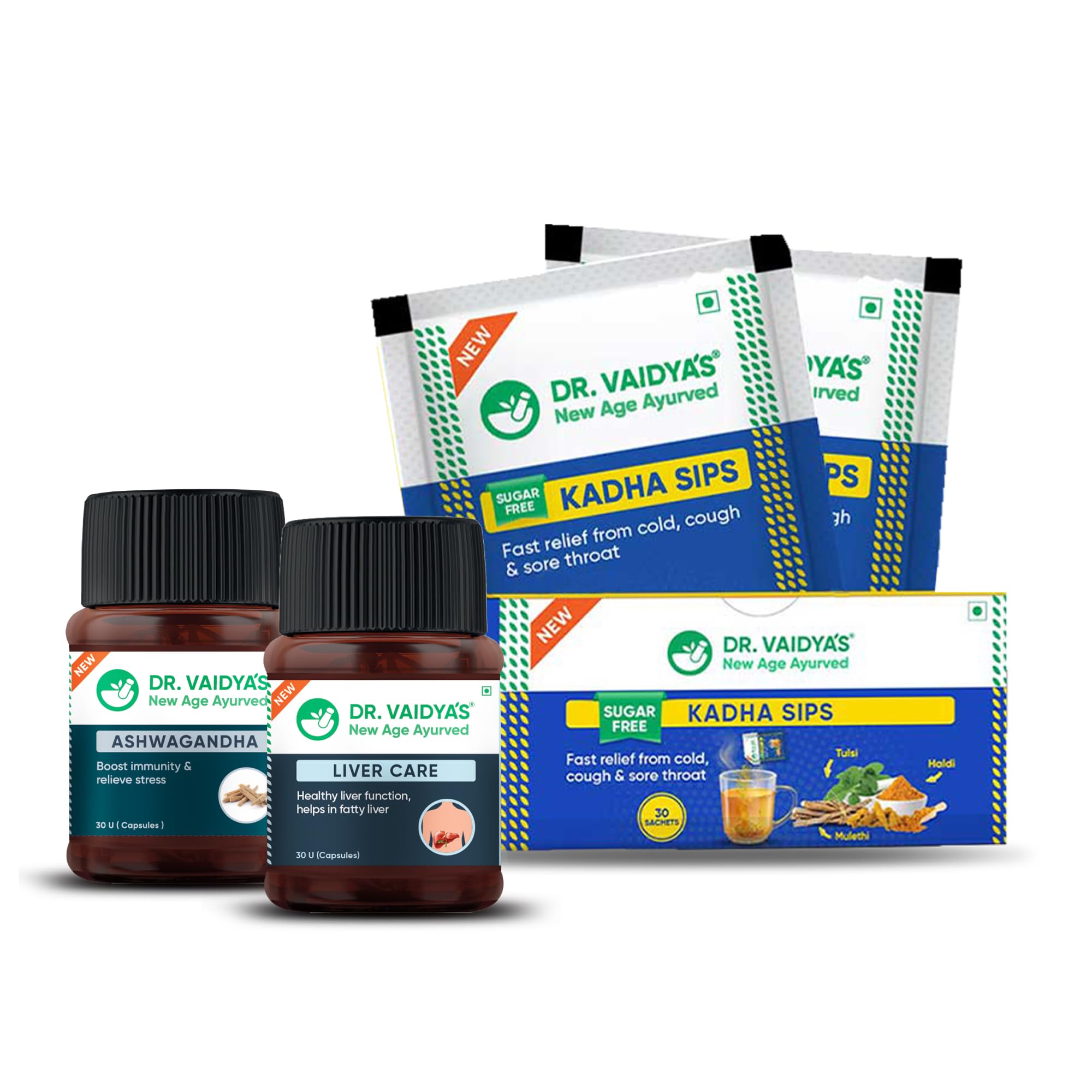 Dr. Vaidya's Post-Viral Recovery Pack (1 Kadha Sip + 1 Ashwagandha+1 Liver Care) Combo of 3