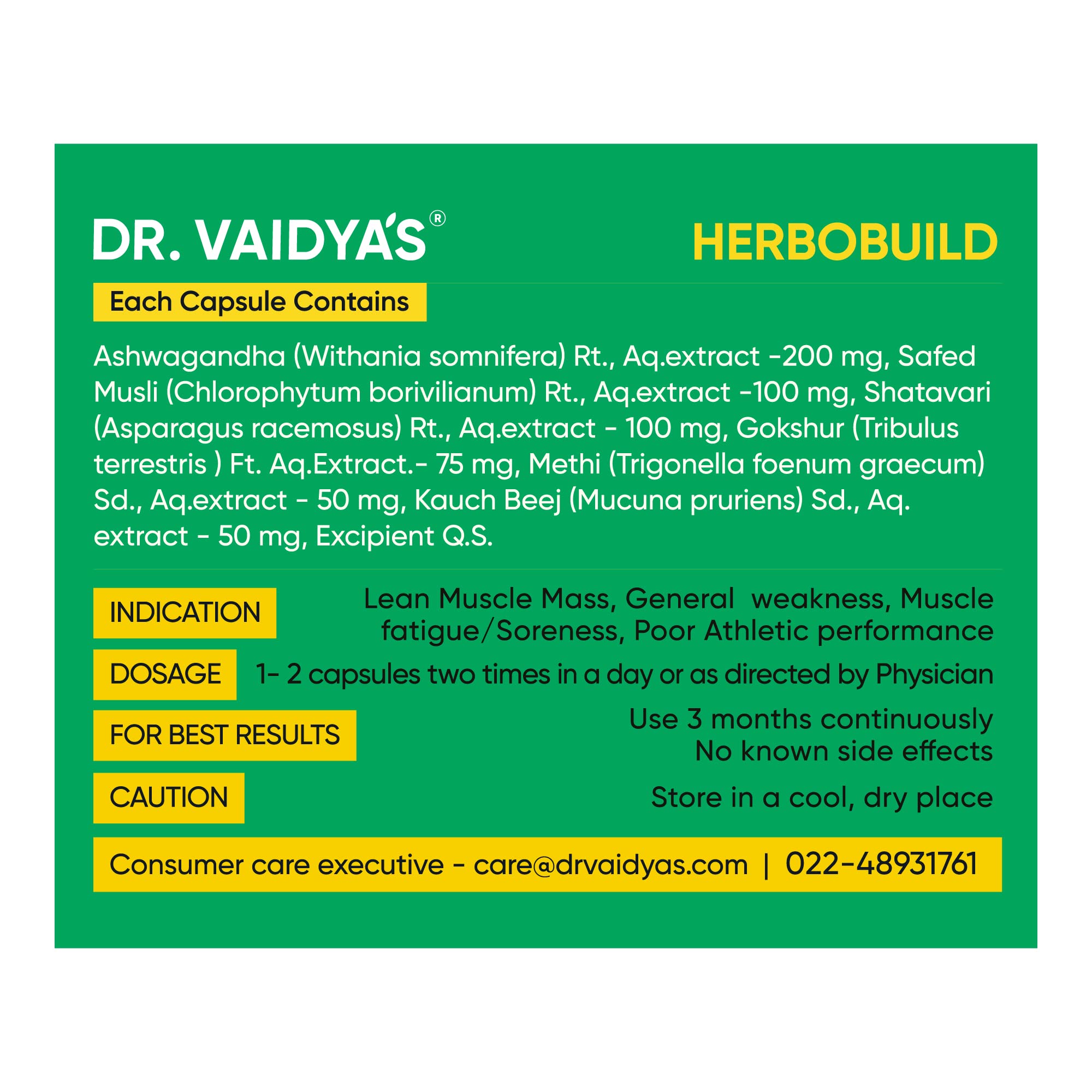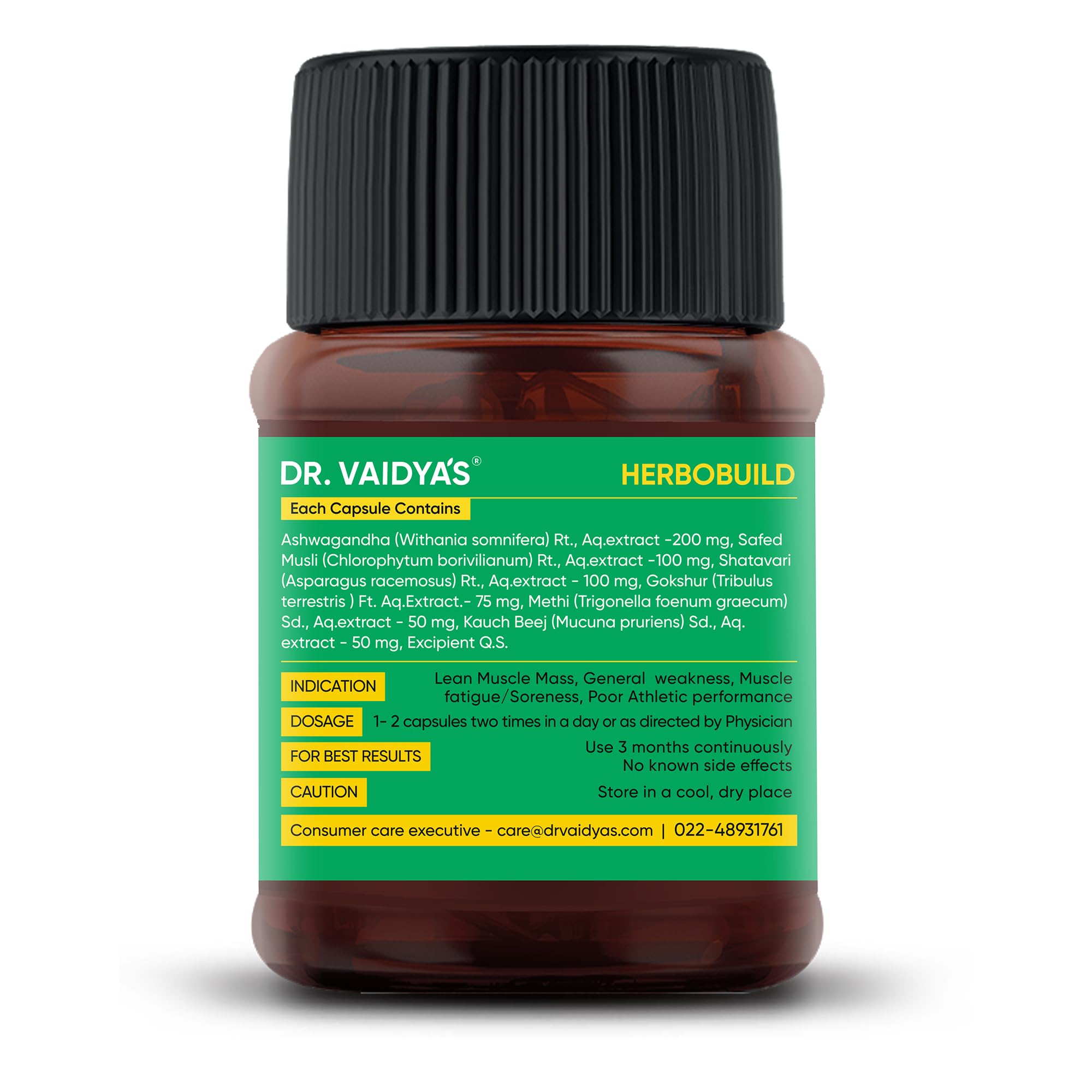 Dr.Vaidya's Herbobuild | Ayurvedic Muscle & Mass Gainer Capsules | Muscle Protein Synthesis | Lean Mass Gainer | Improved Stamina & Strength (Pack of 3 (50 Capsules))