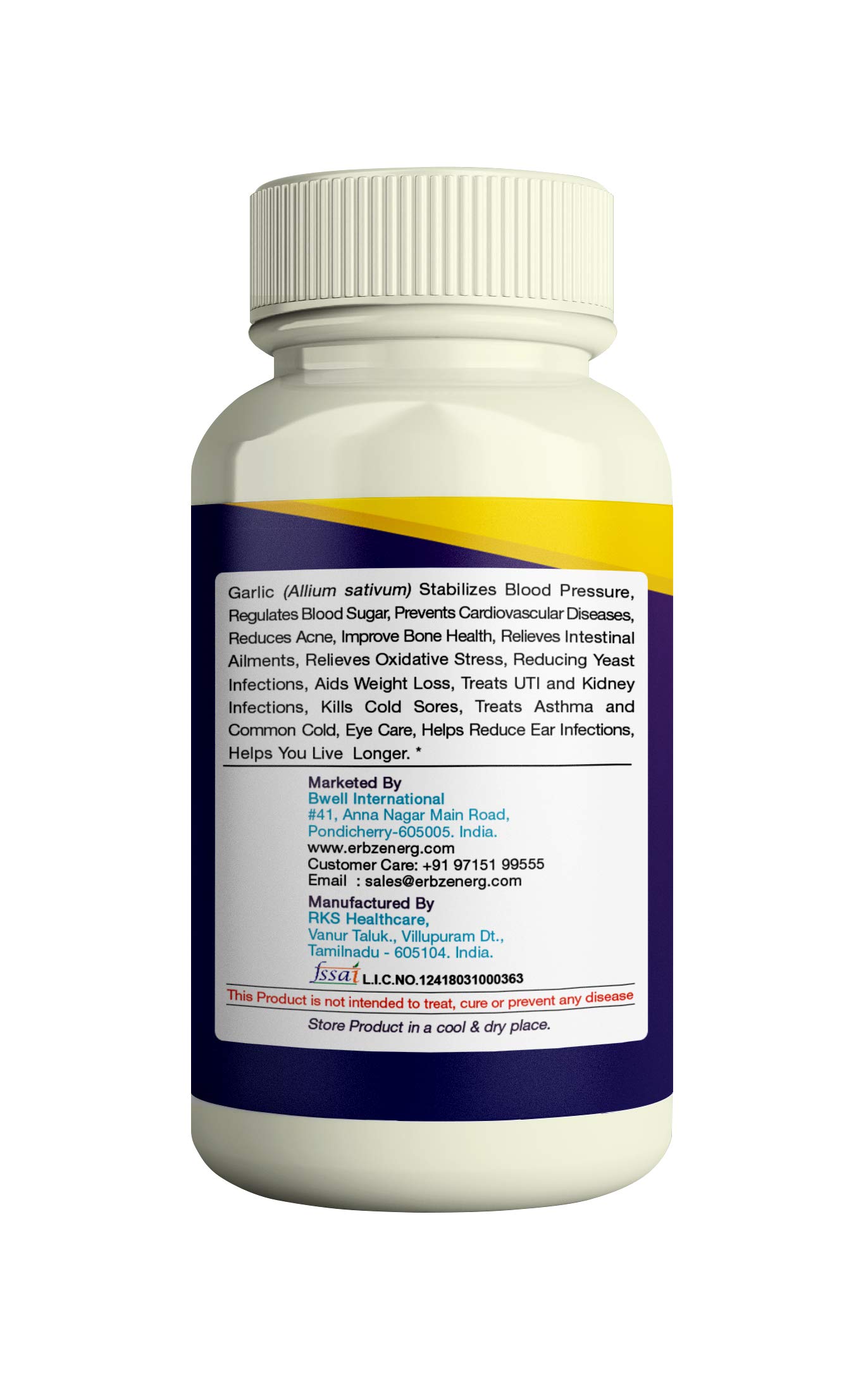 ERBZENERG 100% Natural GARLIC Supplement Capsules. (60 Capsules Pack of 2)