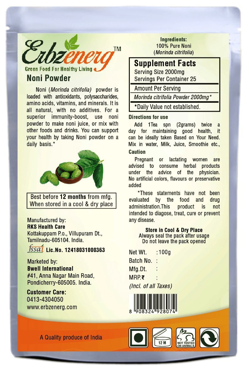 ERBZENERG Organic Noni Fruit Powder 100g | Pack of 1