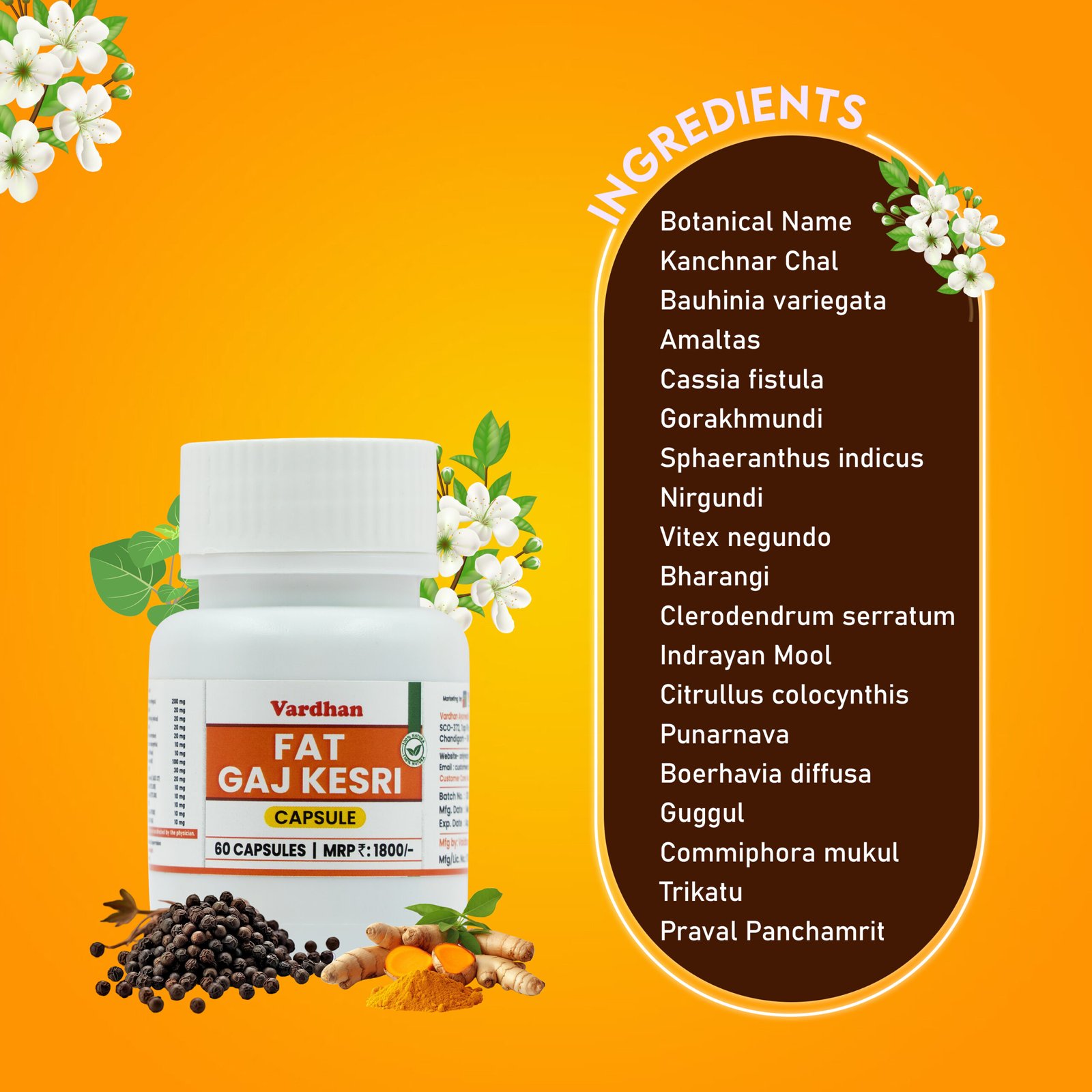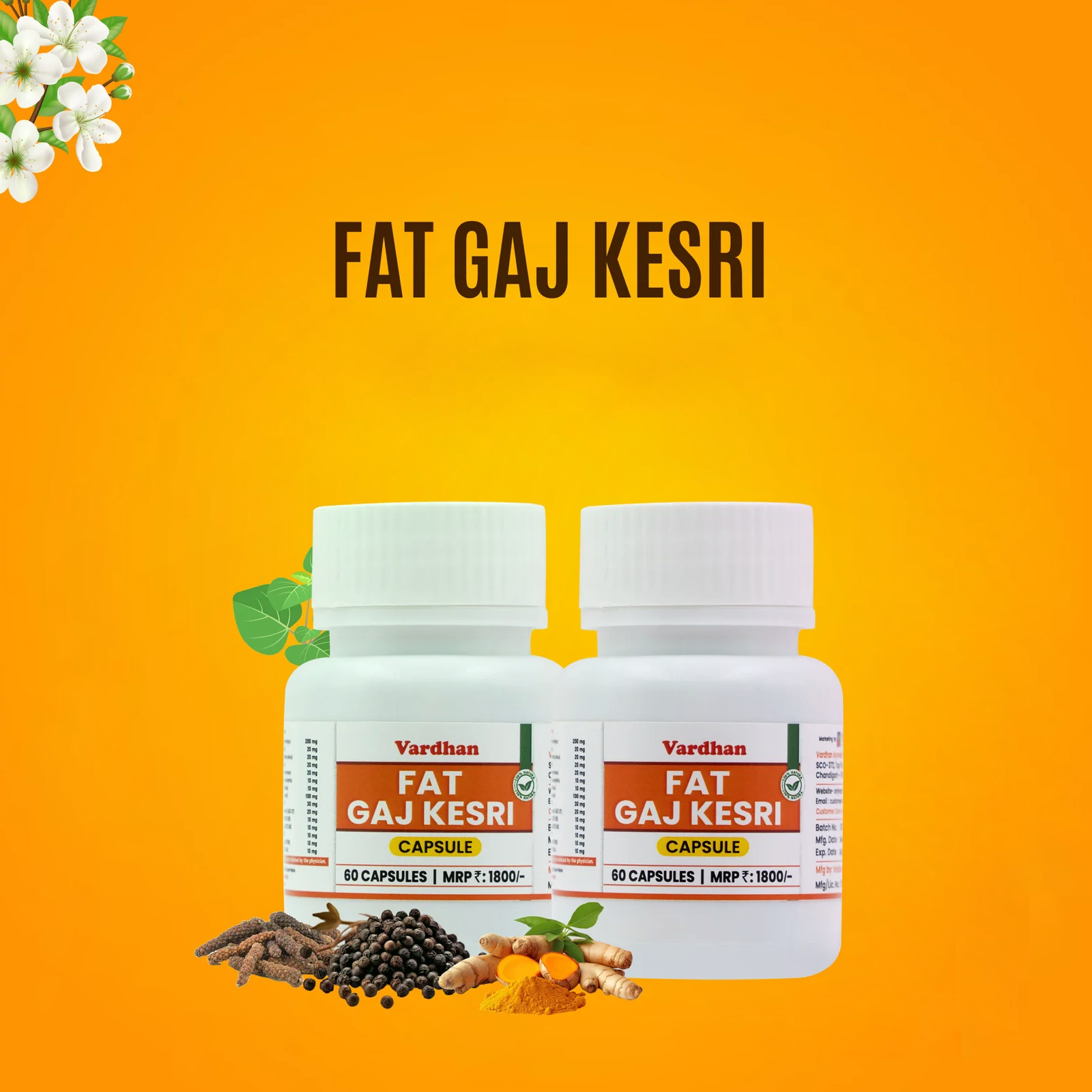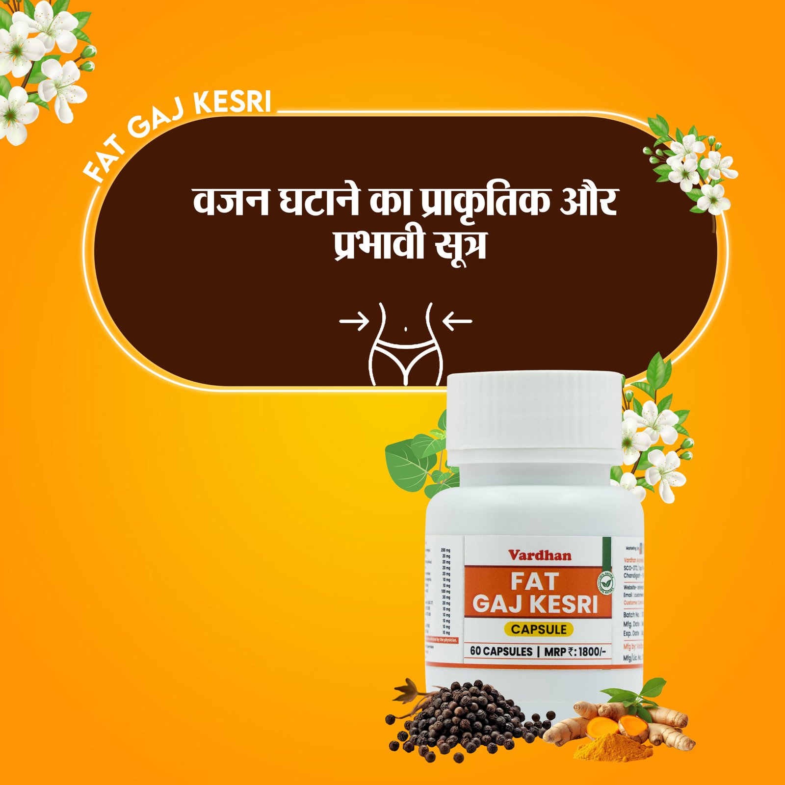 Fat Gaj Kesri is a carefully formulated blend designed to support weight loss and manage obesity. It contains 15 natural herbs and minerals, known for their health benefits and effectiveness in aiding weight management.