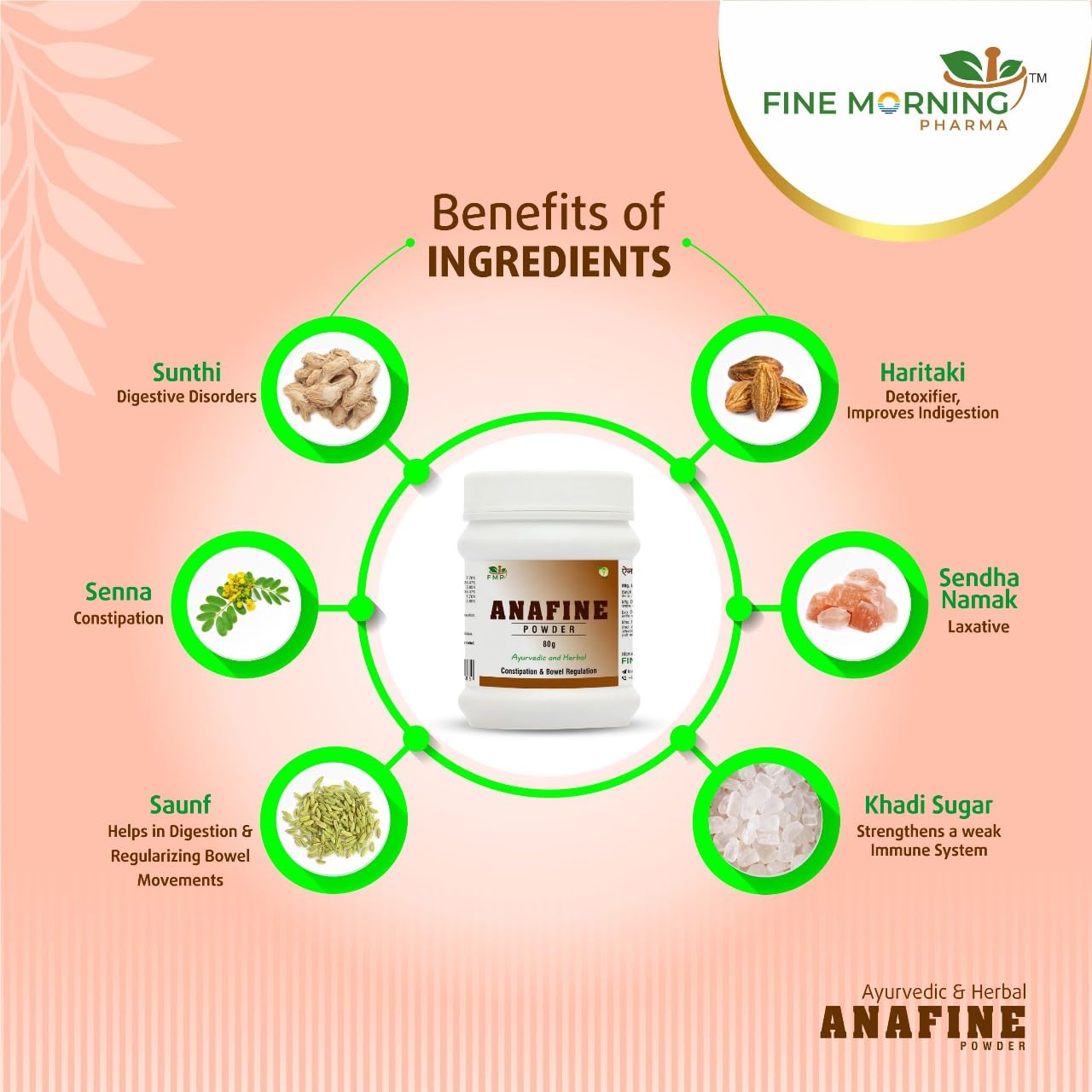 Fine Morning Pharma | Ayurvedic and Herbal Combo Pack of 2 VedVigoX Capsules & Anafine Powder Useful to Boost Stamina Relief Anxiety & Depression Enhance Digestion & Constipation Problems