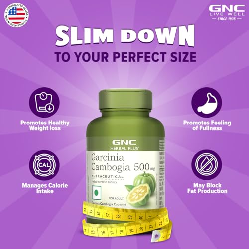 HomeHealth & PersonalDiet & NutritionHealth SupplementsGNC Herbal Plus Garcinia Cambogia | 60 Capsules | Aids in Weight Loss | Controls Hunger Pangs | Helps Reduce Bad Fats | Improves Serotonin Level | Formulated in USA | 500mg Per Serving