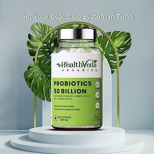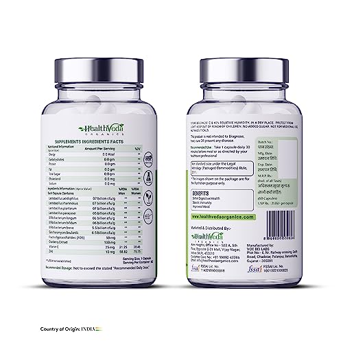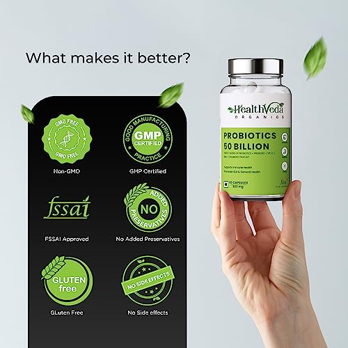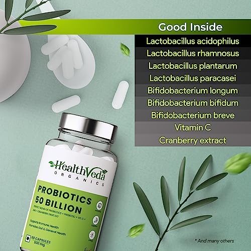 Health Veda Organics Probiotics 50 Billion CFU Multi-Strains | 60 Veg Caps. | 10X Better Support | For Both Men & Women