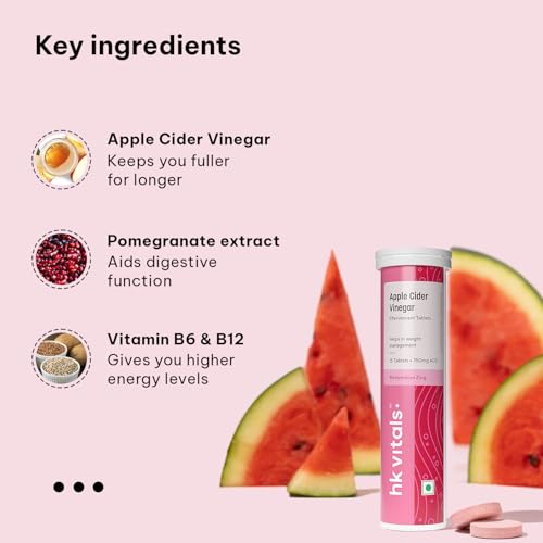 INDIAâS FIRST 750 mg ACV TABLETS: HealthKart HK Vitals Apple Cider Vinegar is Indiaâs first 750 mg apple cider vinegar tablets which are effervescent; Available in tasty green apple & watermelon flavours