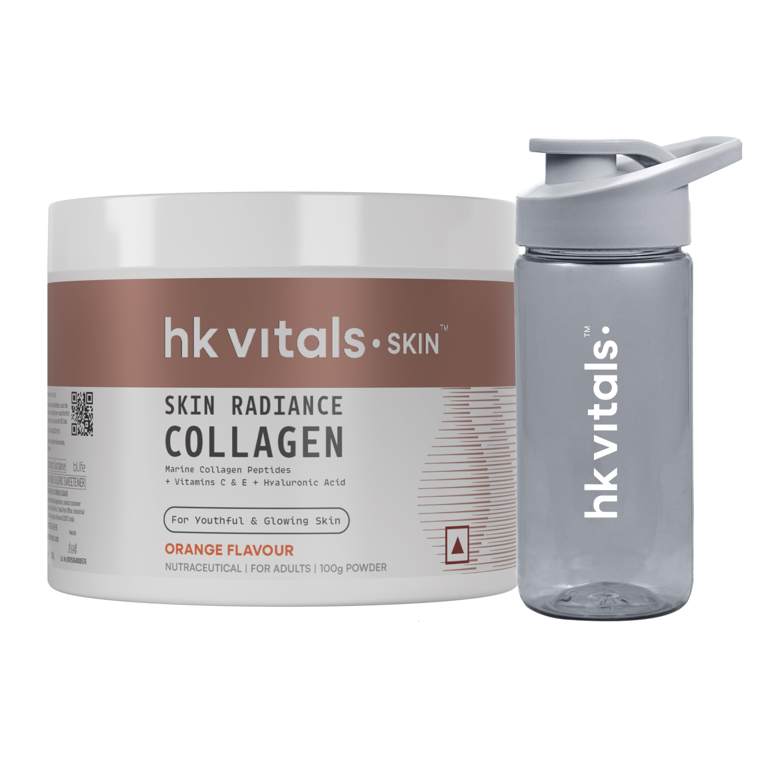 HealthKart hk vitals Marine Collagen Supplement (Orange 100g) & Sipper Bottle (Grey 300ml) | Combo Pack Powder