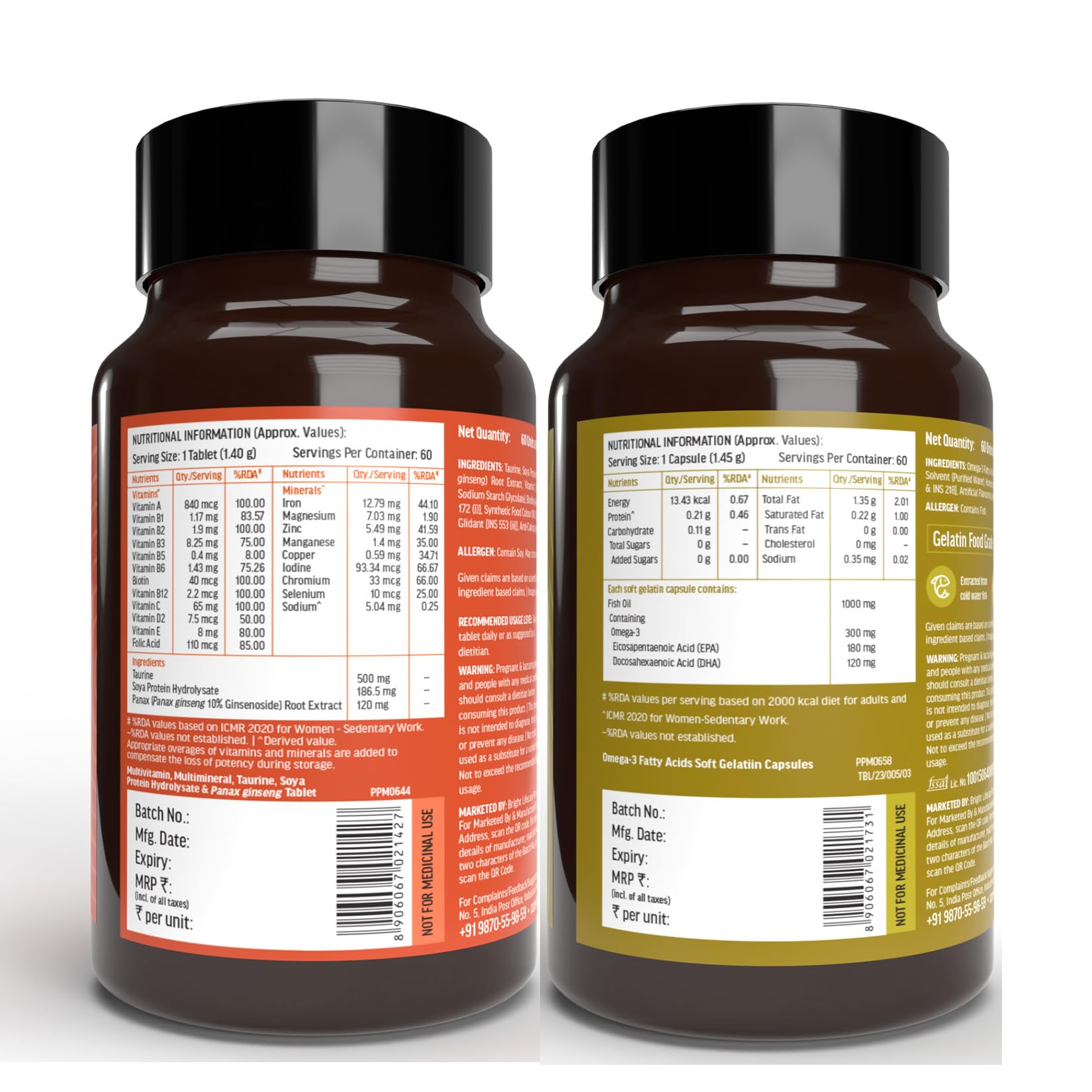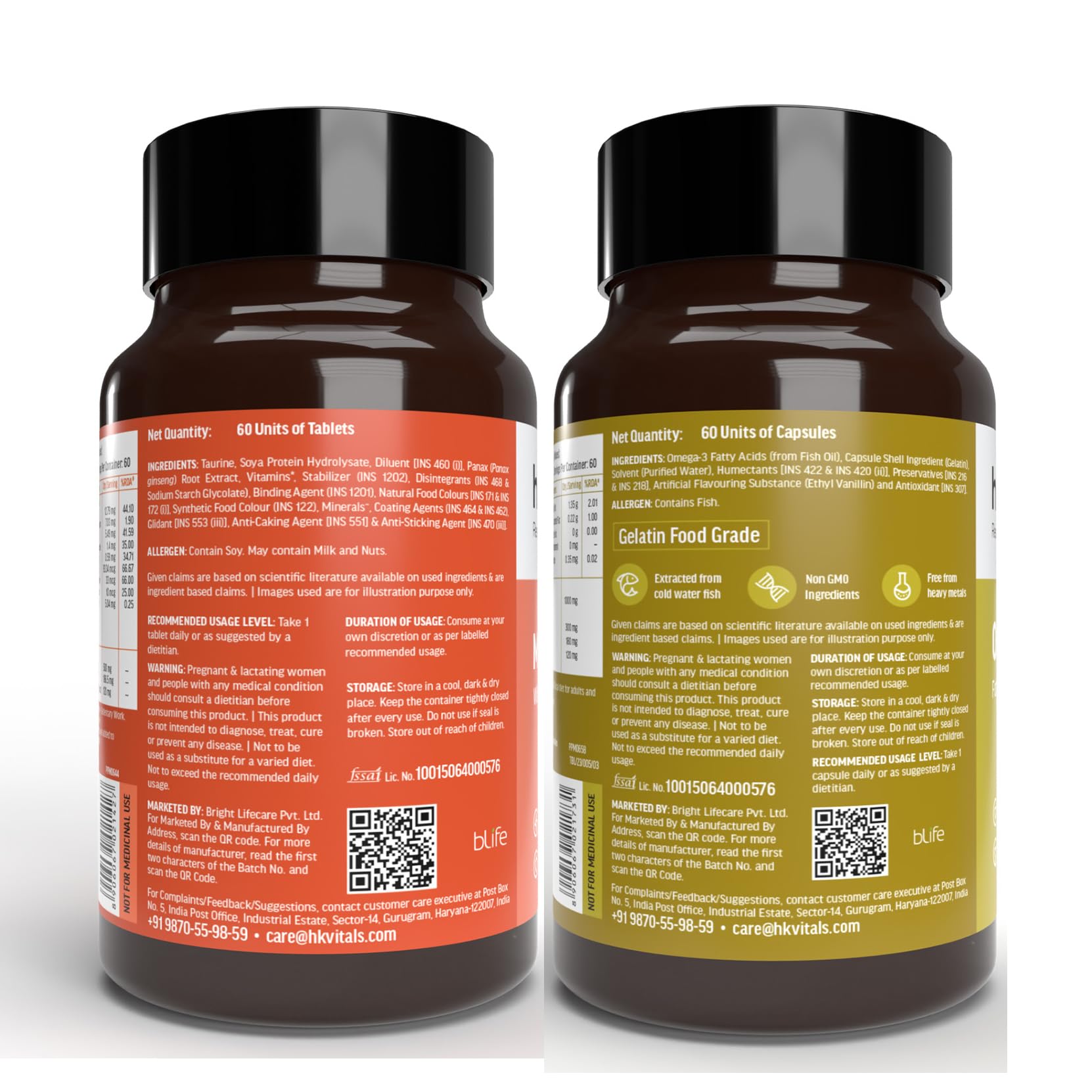 HealthKart Hk Vitals Omega 3 Supplement & Multivitamin ( 60 Capsules Each) Combo Pack|For Men And Women2 Count