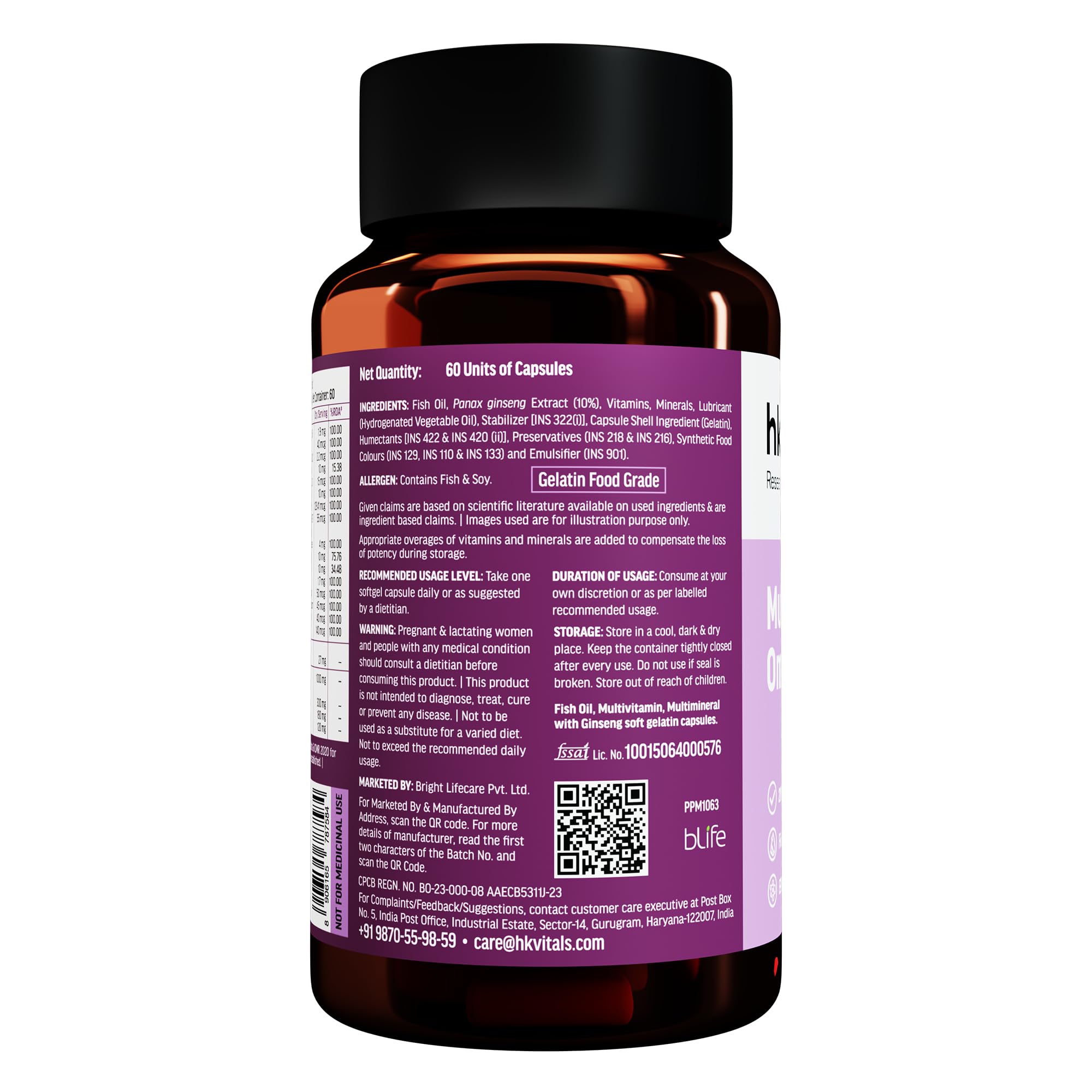 HealthKart hk vitals Multivitamin with Omega-3 Supplement (60 Capsules) | For Men and Women | 21 Vitamins & Minerals | 180mg EPA & 120mg DHA