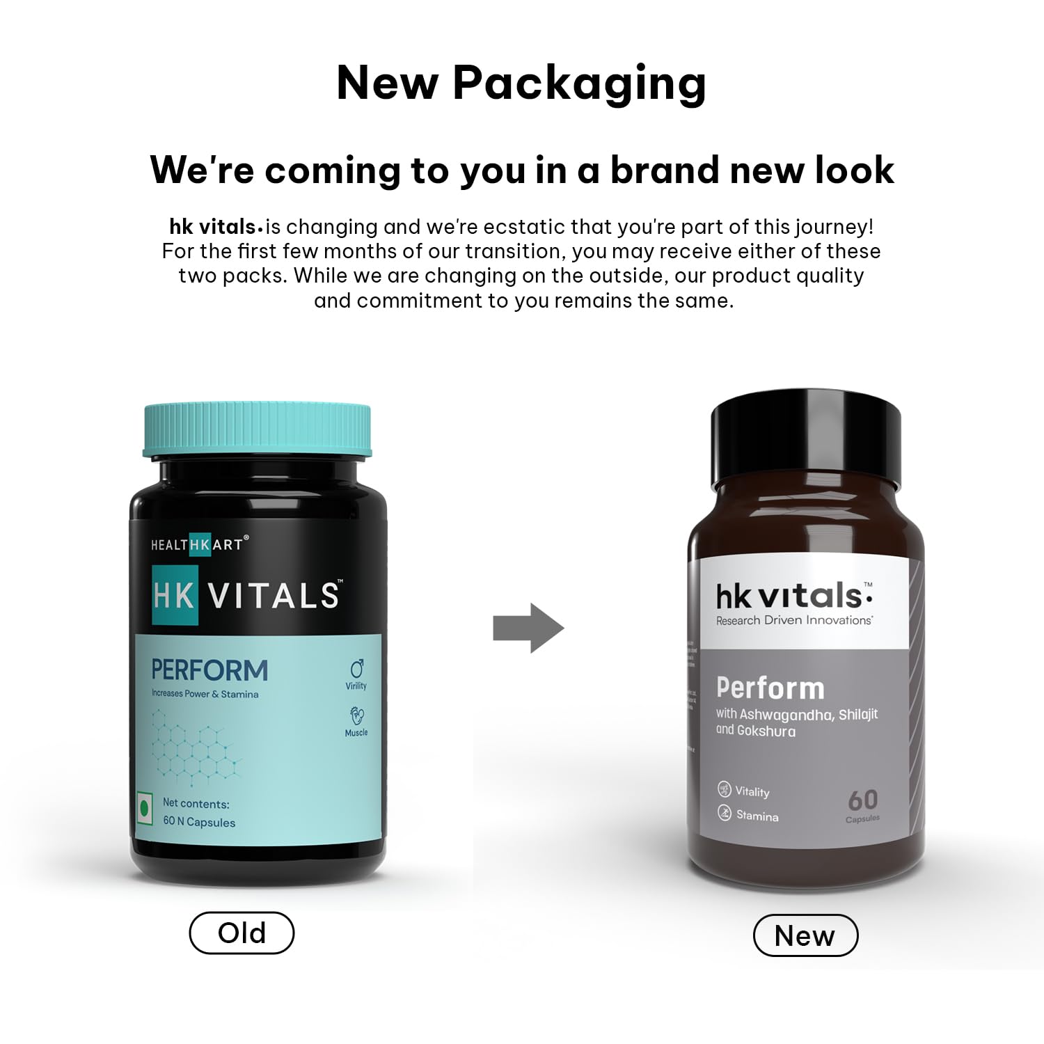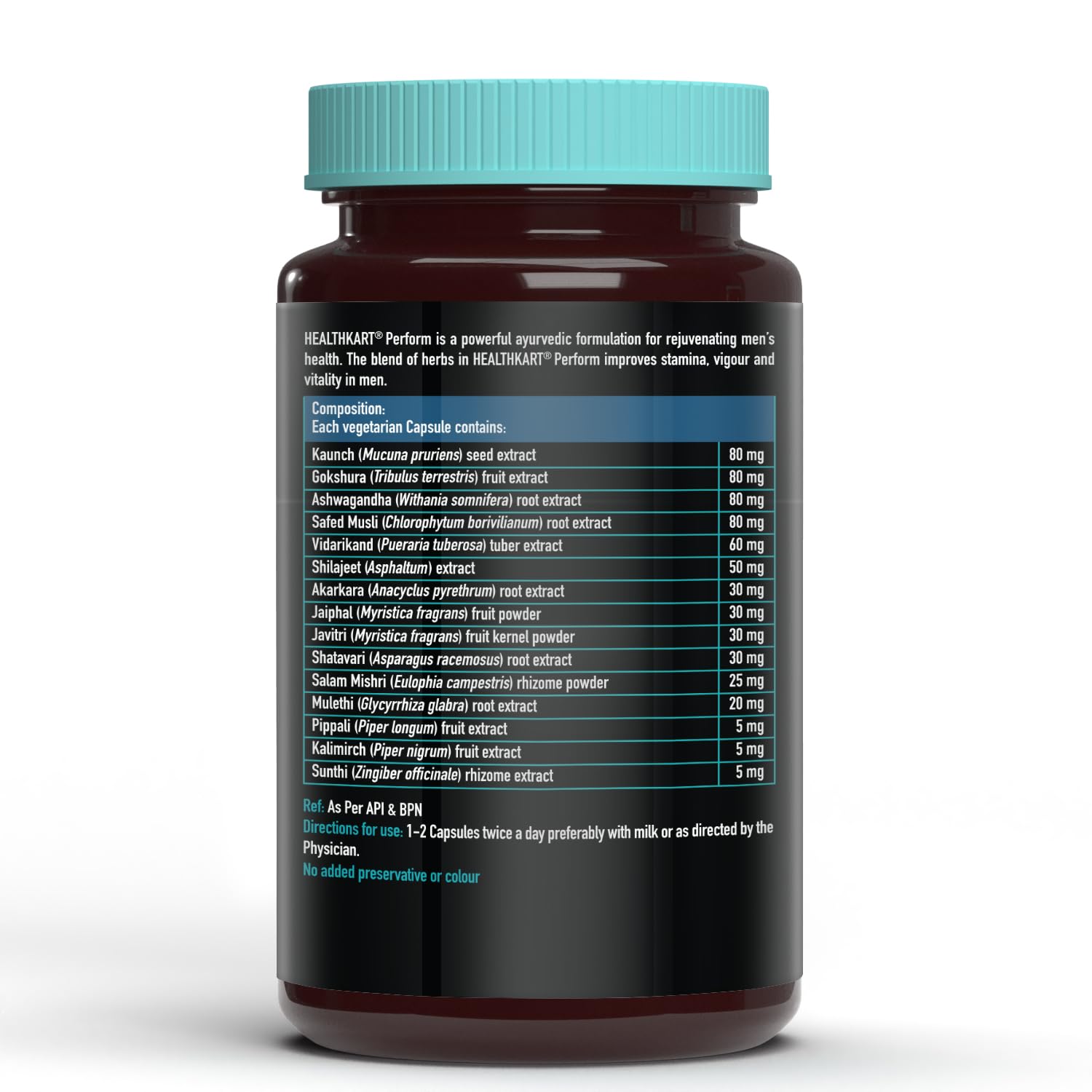 HealthKart HK Vitals Perform with 15 Ayurvedic Herbs Gokshura Ashwagandha Safed Musli & Shatavari for Power and Stamina 60 Veg Capsules